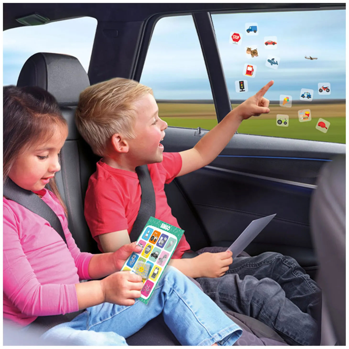 Travel raam bingo komt in een set van 6 verschillende bingo kaarten en 64 raamstickers. De stickers zijn eenvoudig her te gebruiken.