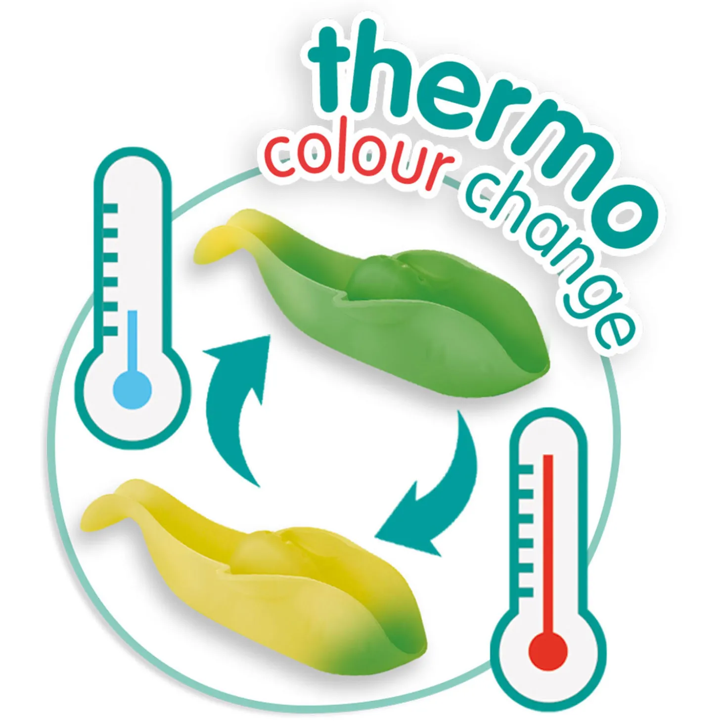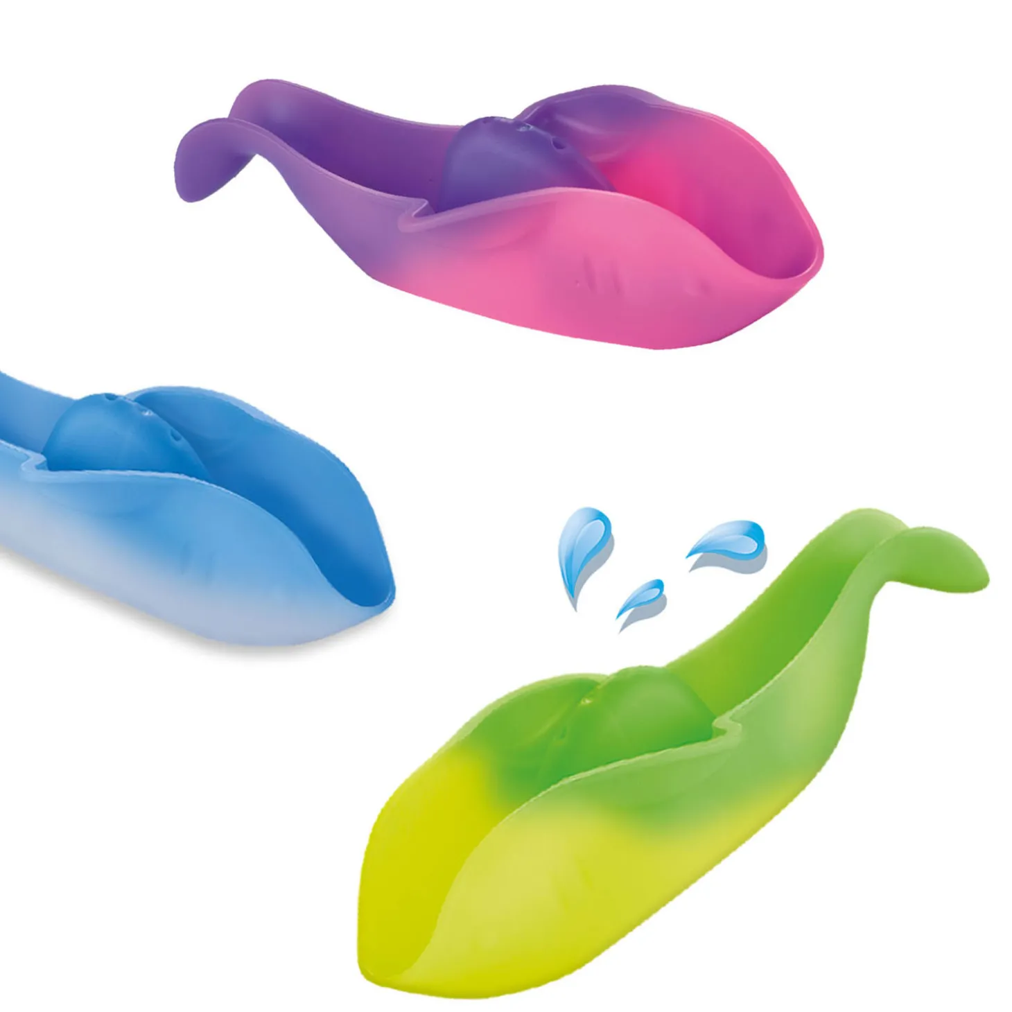 Laat de drie vissen in het warme bad duiken en kijk eens naar de kleur van de vissen! De groene vis wordt geel, de paarse kleurt roze en de blauwe wordt wit! Met deze drie van kleur veranderende vissen heb je urenlang speelplezier in bad. Je kunt ze stapelen, achter elkaar schakelen, maar ook prima gebruiken als schepje of vergiet. In het warme badwater hebben ze steeds opnieuw een andere kleur als daarbuiten, magisch!