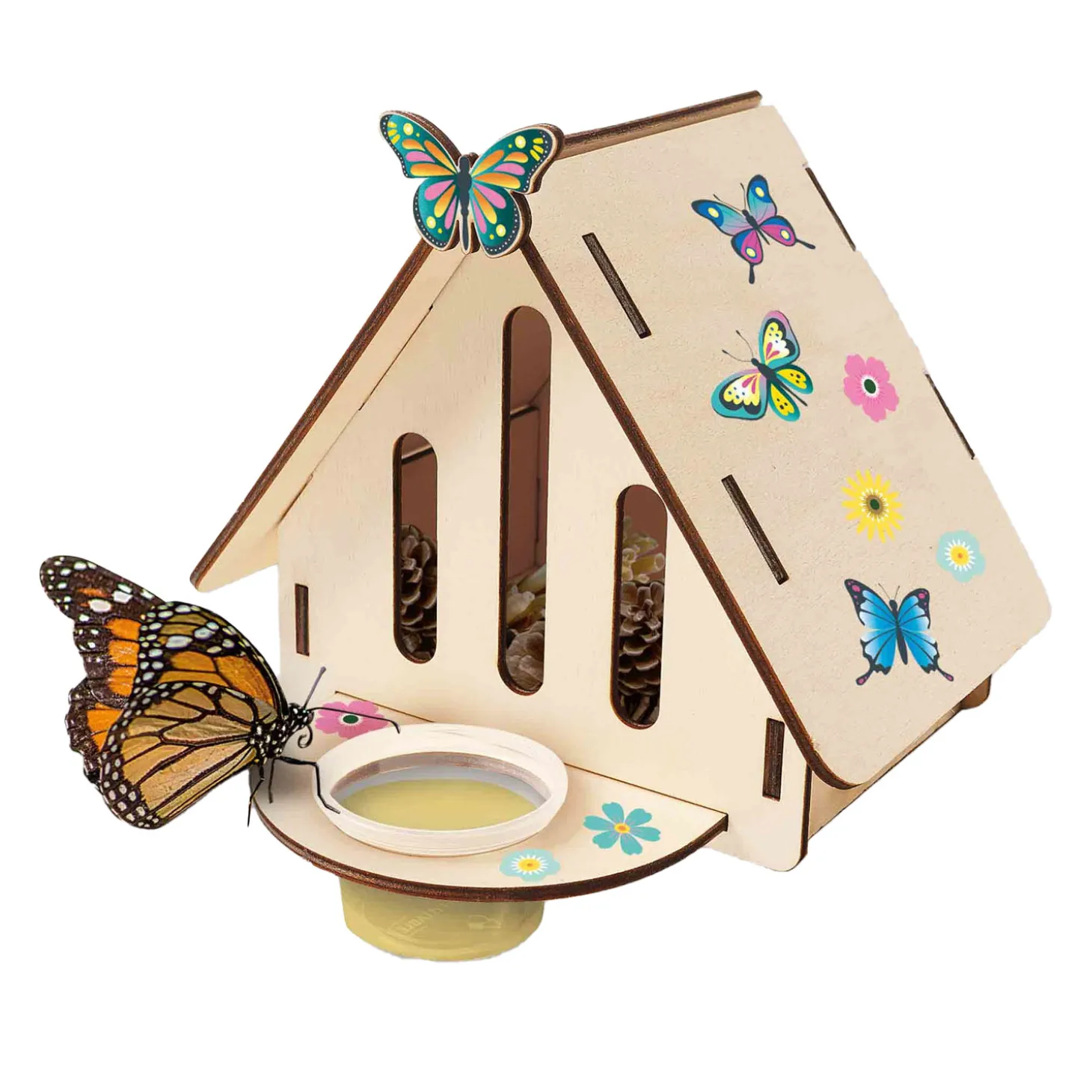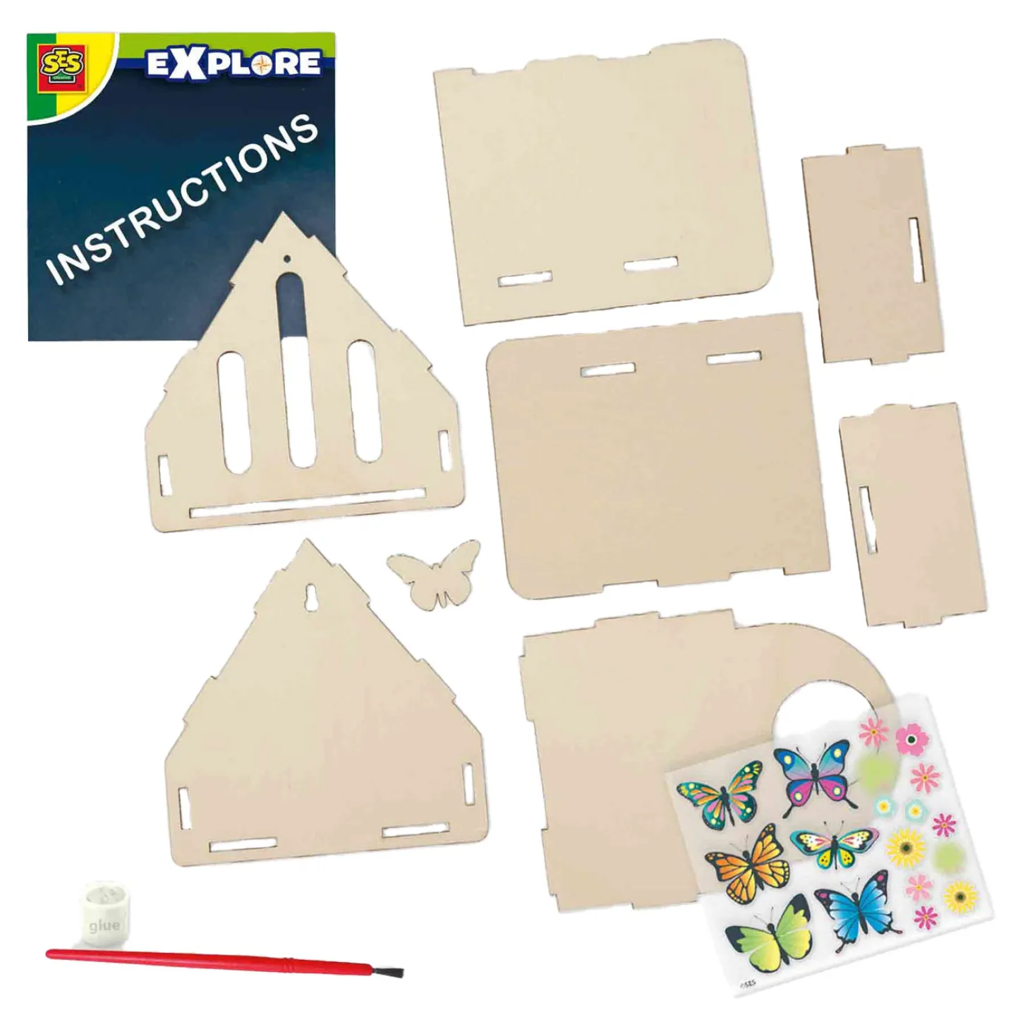 •Houten vlinderhotel om zelfstandig in elkaar te zetten