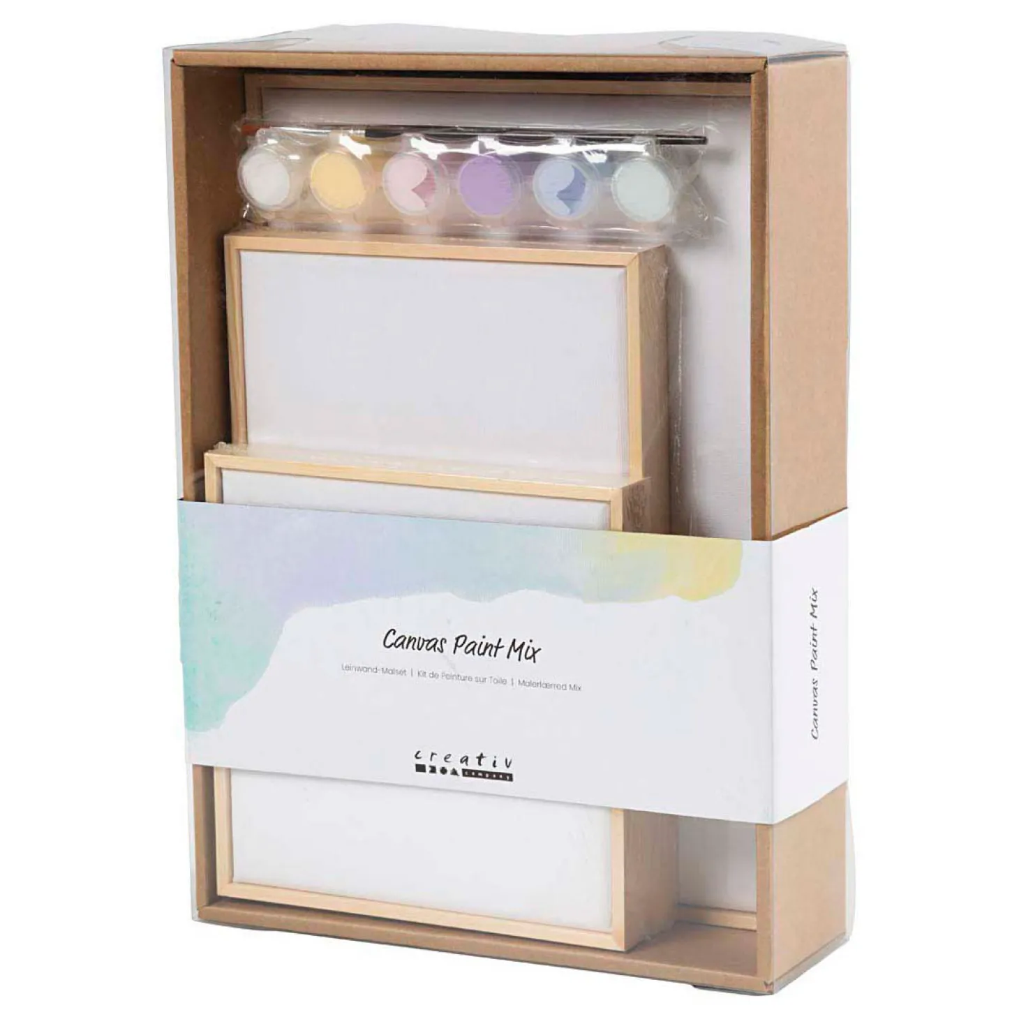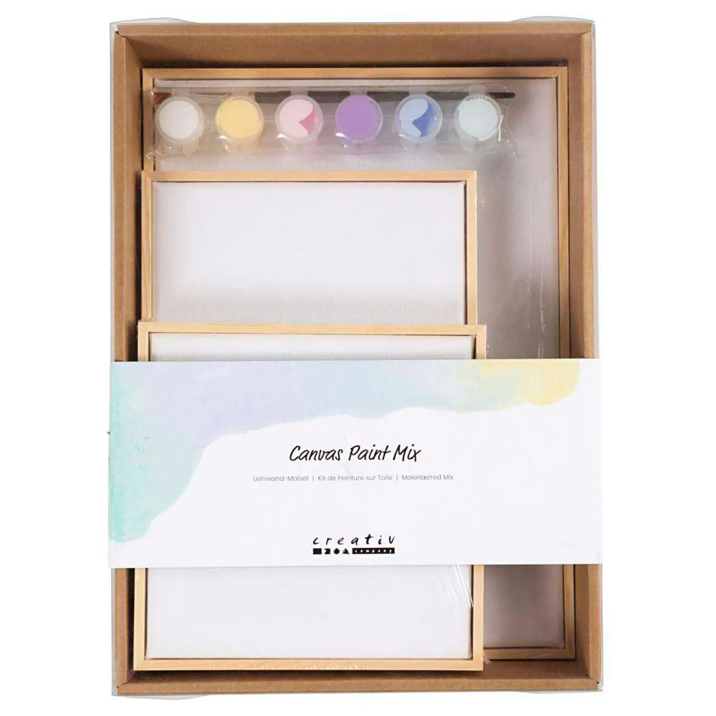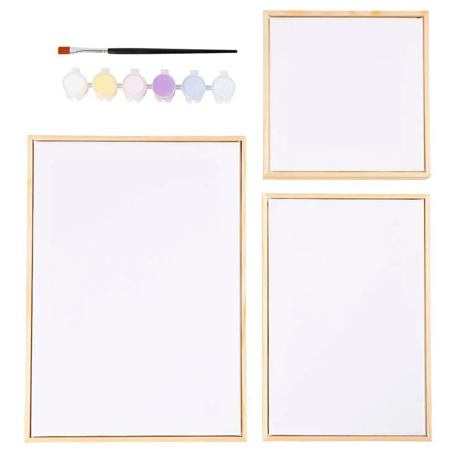 Alles wat je nodig hebt voor je volgende kunstproject in één pakket. Schilder drie gespannen canvassen in verschillende maten die al zijn ingelijst en helemaal klaar zijn om op te hangen.
