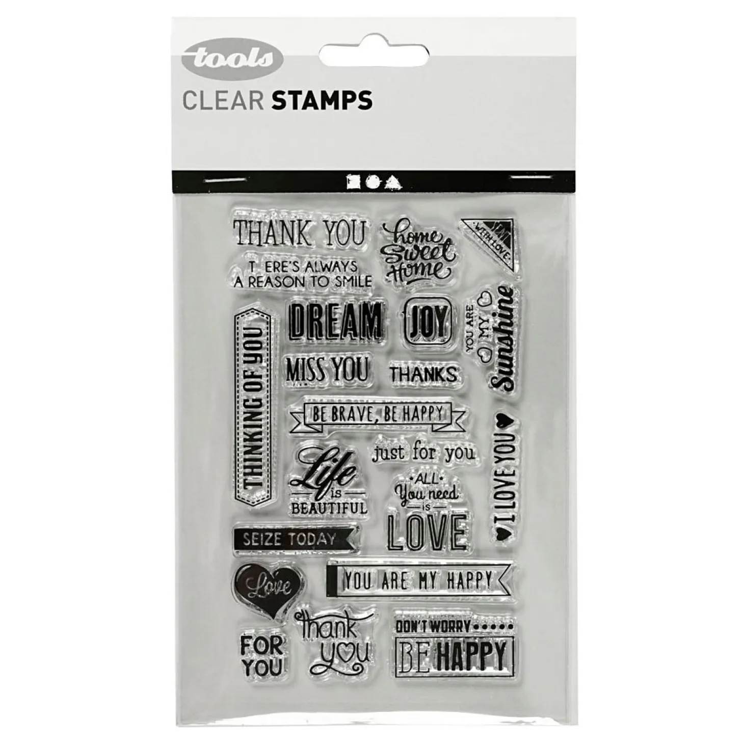 Vel met verschillende motieven silicone stempels. Te gebruiken met een acryl stempelblok (artikelnr. 6023031).