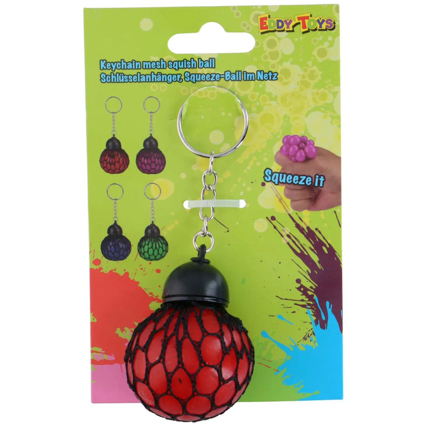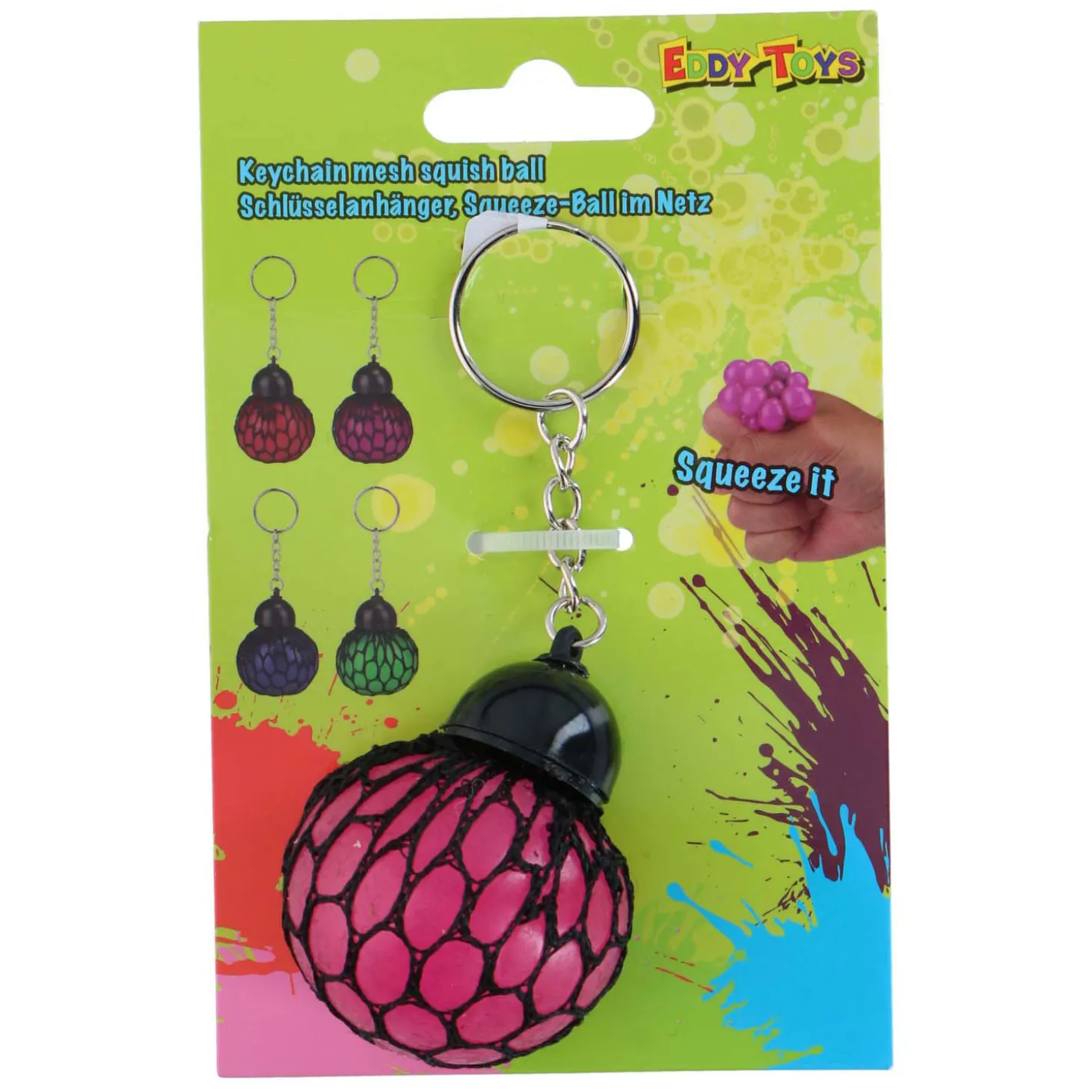 Met deze grappige sleutelhanger heb je altijd een stressballetje bij de hand! Het balletje zit in een klein netje van mesh. Knijp erin om het balletje door het netje heen te persen. Dat ziet er grappig uit! De sleutelhanger is ca. 5,5 x 4 centimeter groot.Prijs per stuk, verschillende uitvoeringen/kleuren worden door elkaar geleverd.