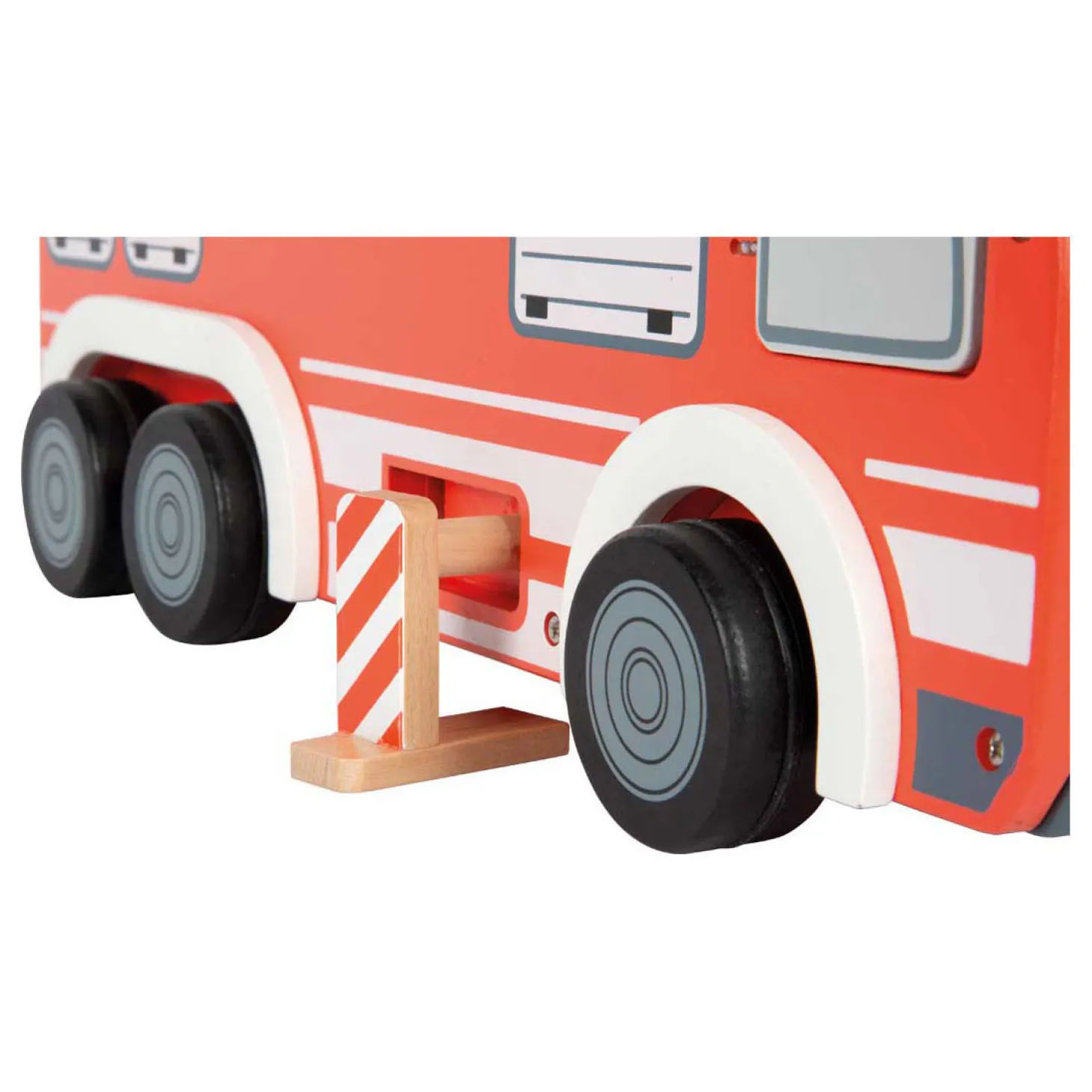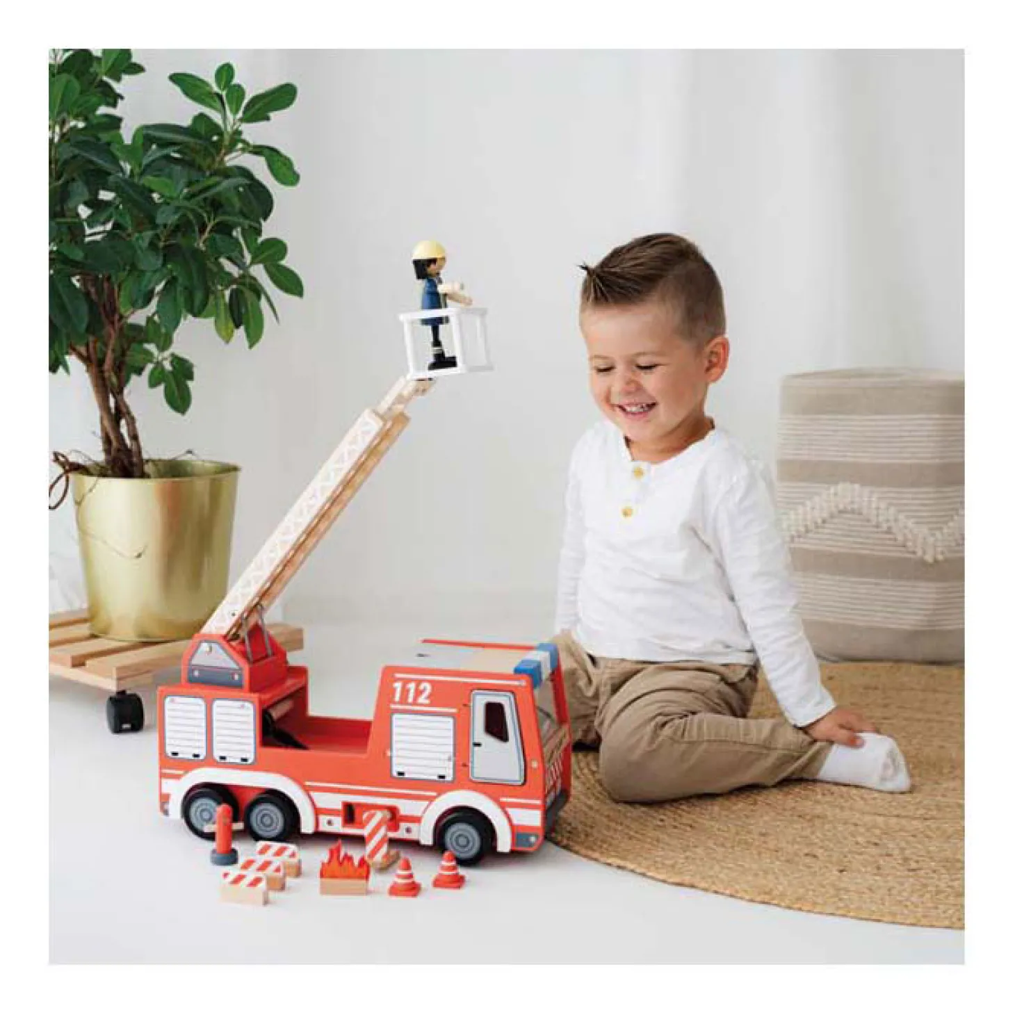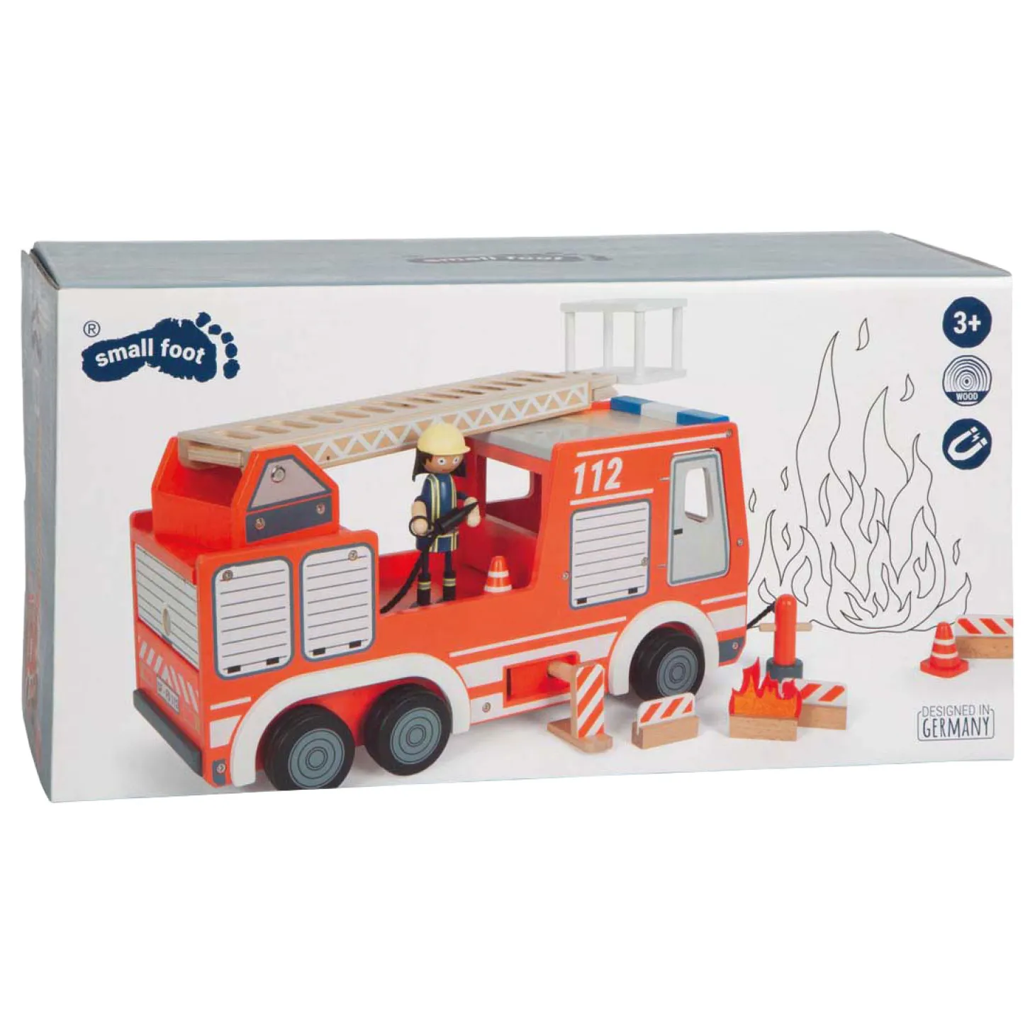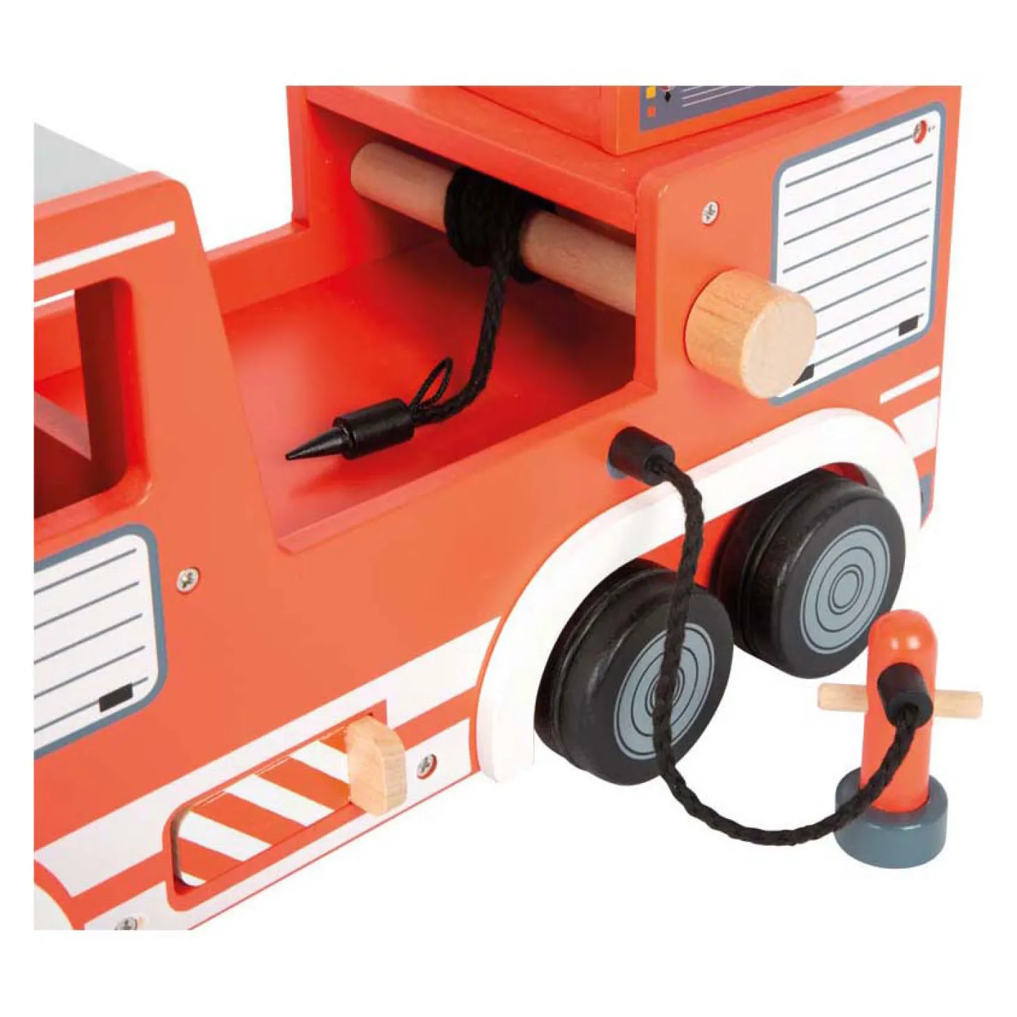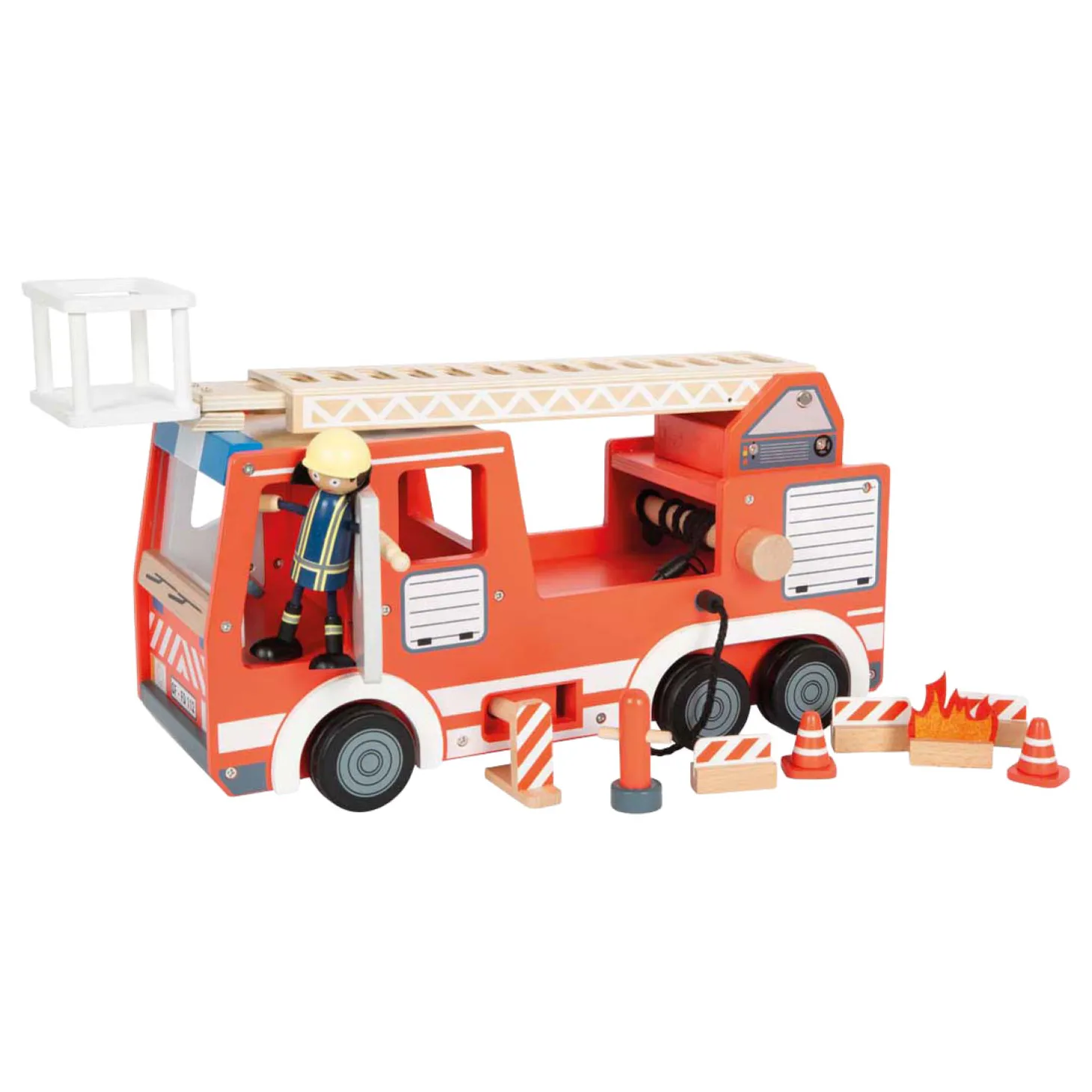 •Grote houten brandweerwagen met uitschuifbare ladder en mand