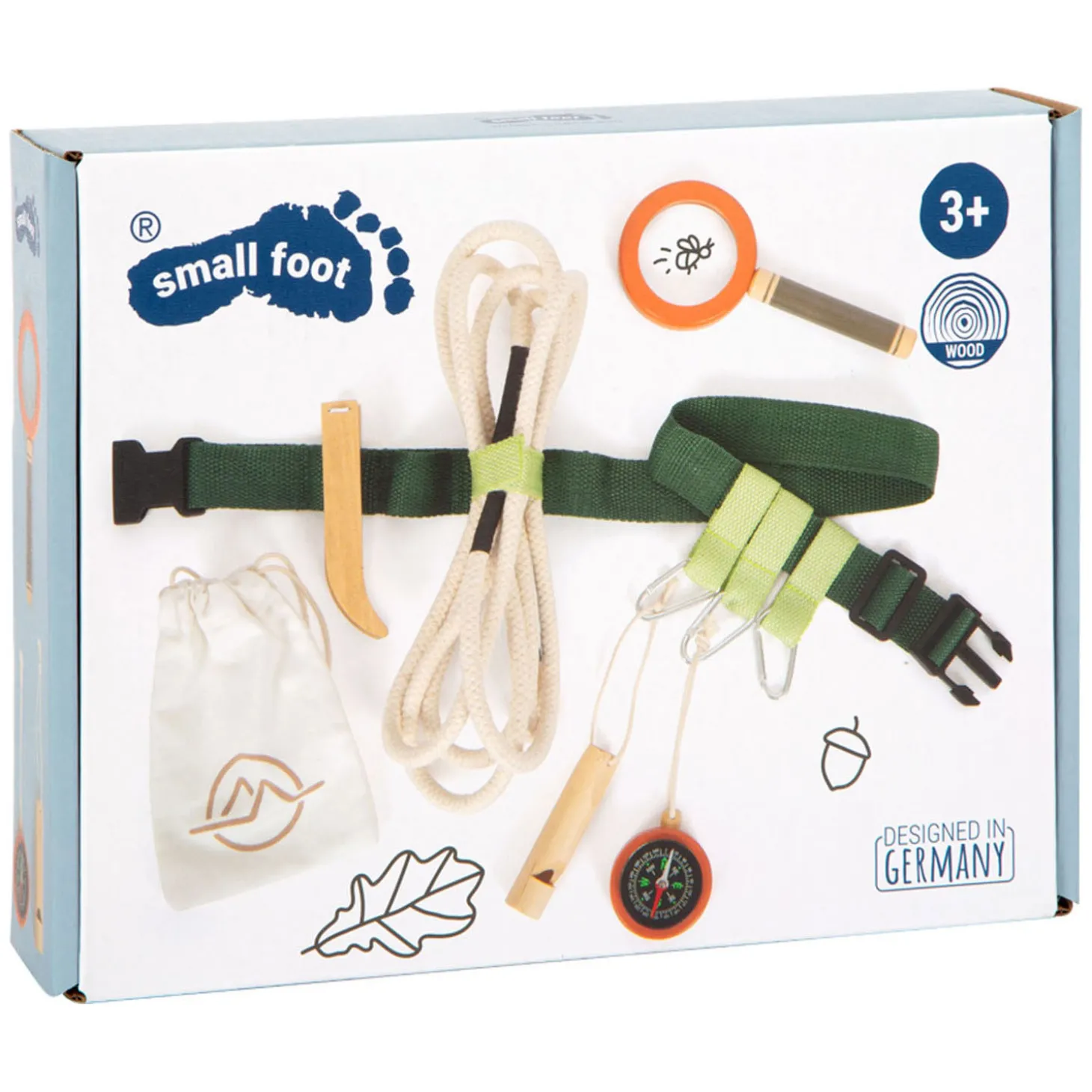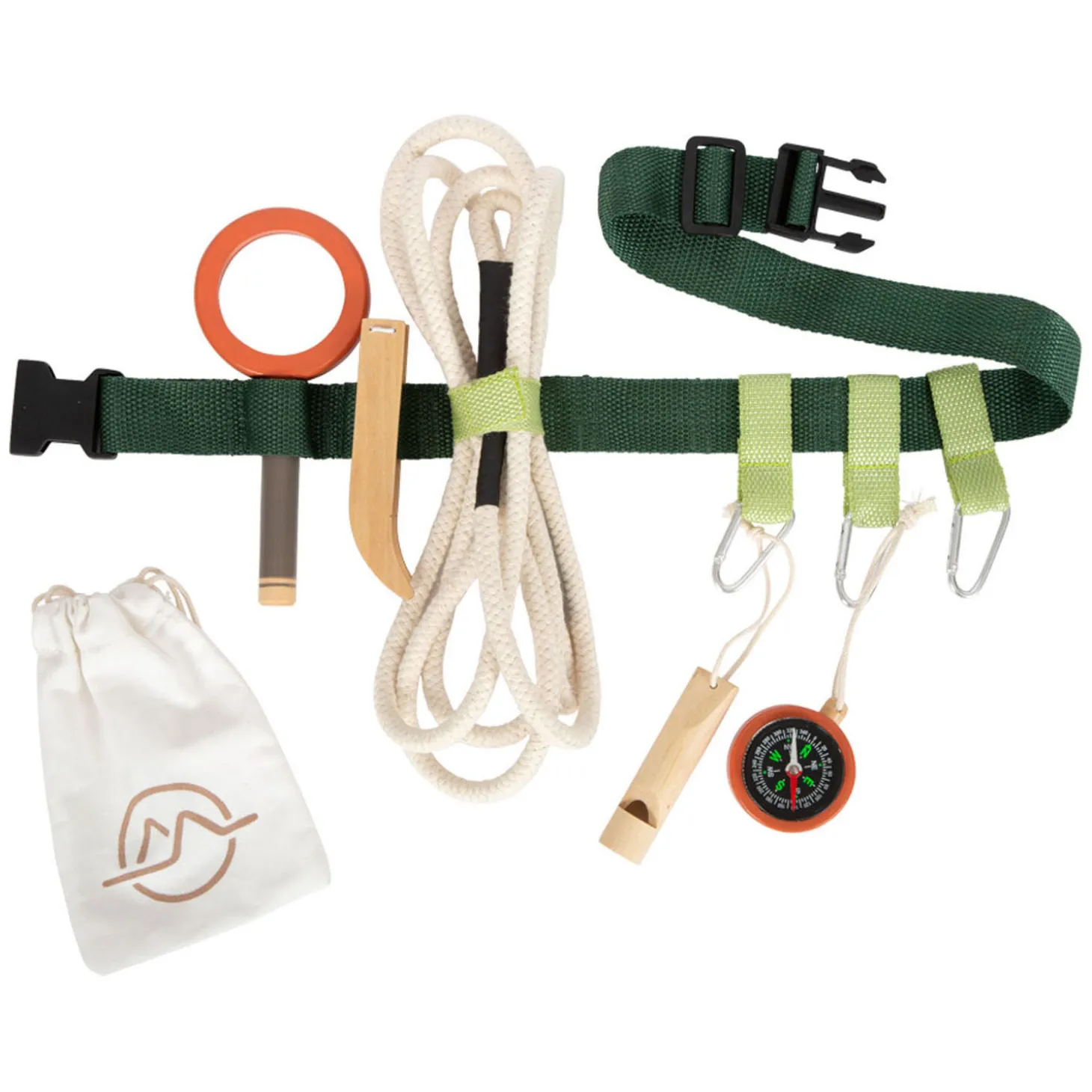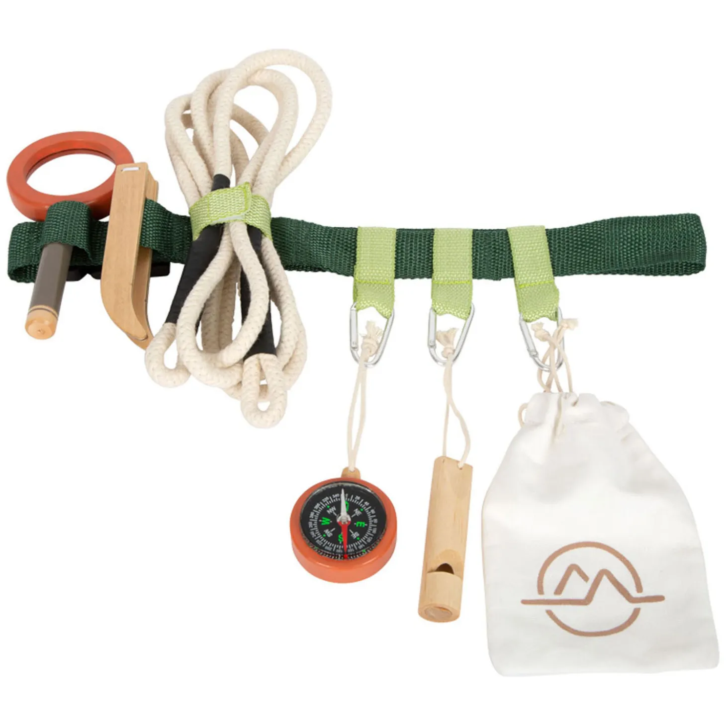 • Incl. karabijnhaken, signaalfluit van massief hout, vergrootglas met vergrotingsfunctie, pincet, kompas, touw en katoenen zak om dingen uit de natuur te verzamelen