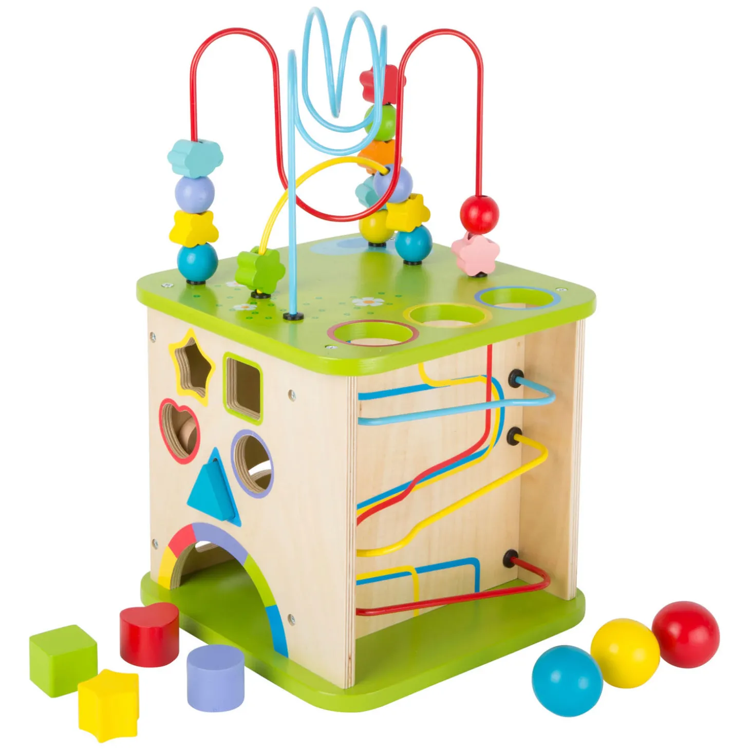 Small Foot – Houten Activiteitenkubus met Knikkerbaan, 8dlg.
