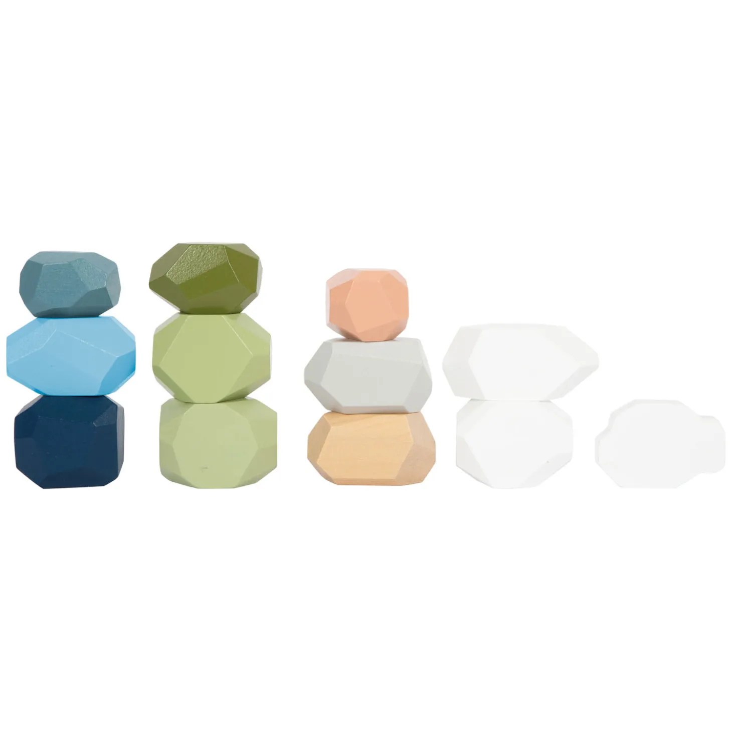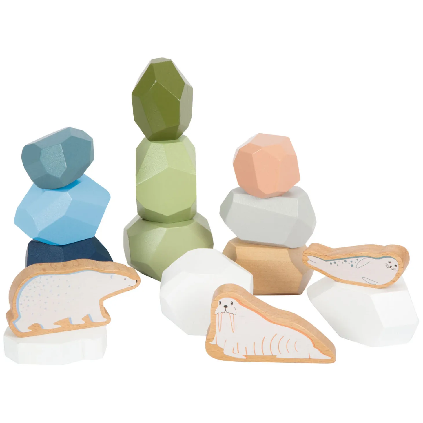 Drie dierenfiguren in de vorm van een zeehond, ijsbeer en walrus en een stuk in de vorm van een ijsschots komen samen met de veelkleurige balansstenen om een arctisch landschap te creëren en het vertellen van fantasierijke verhalen tijdens creatief spel aan te moedigen. De stenen hebben vele toepassingen, zoals voor het stapelen, balanceren, tellen en sorteren, maar ook voor mediteren en decoreren.