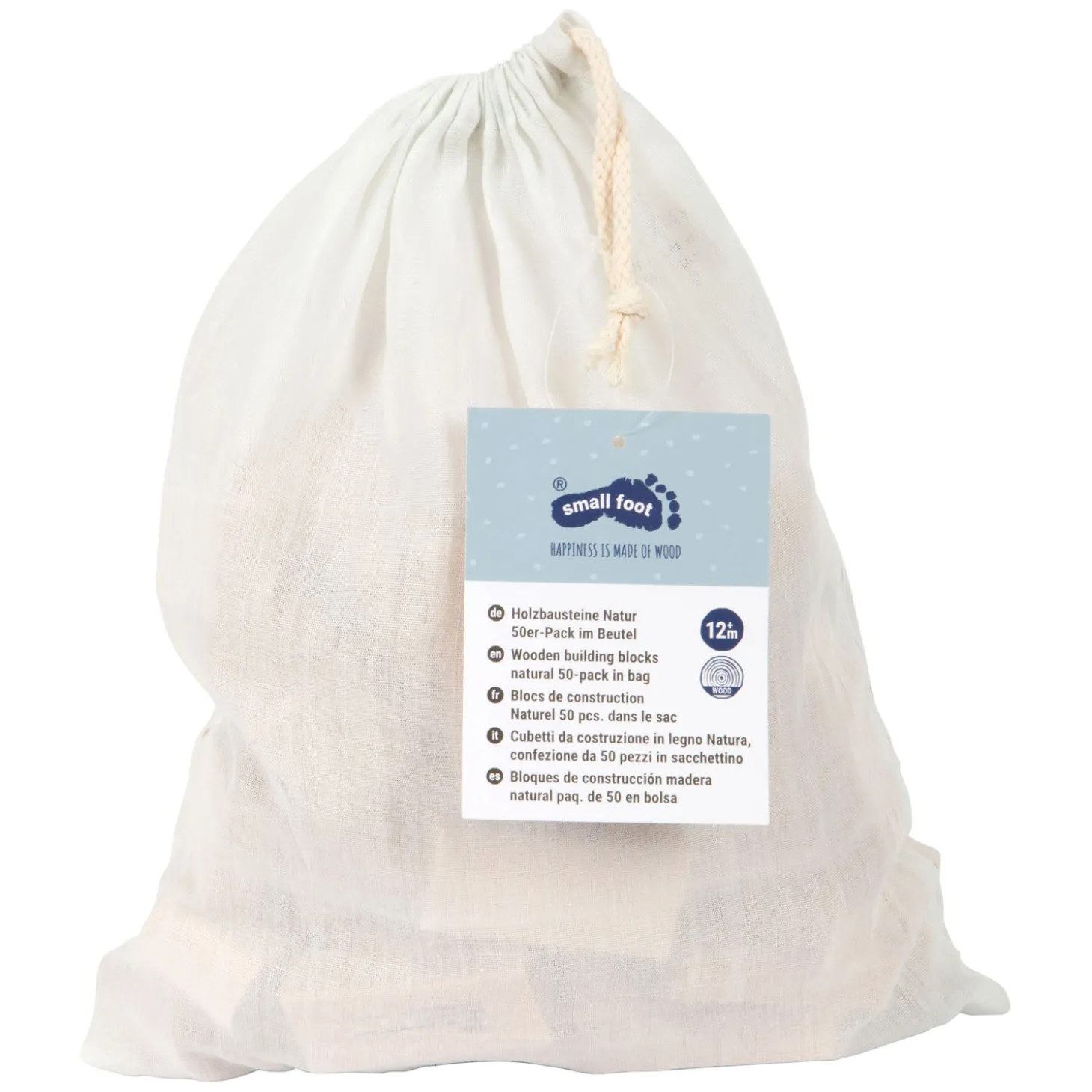 • Een uitgebreide 50-delige set bouwstenen van natuurlijk, onbehandeld hout