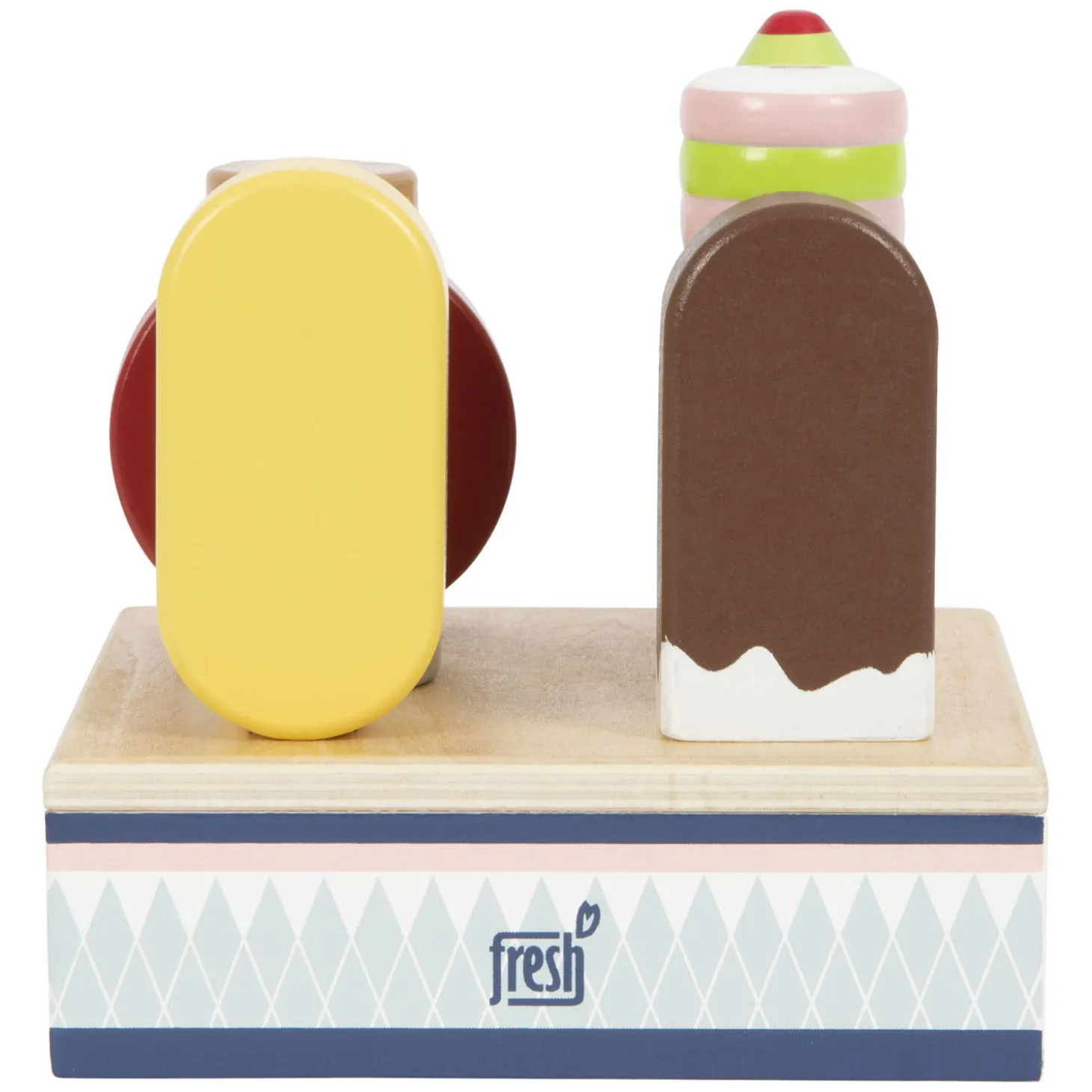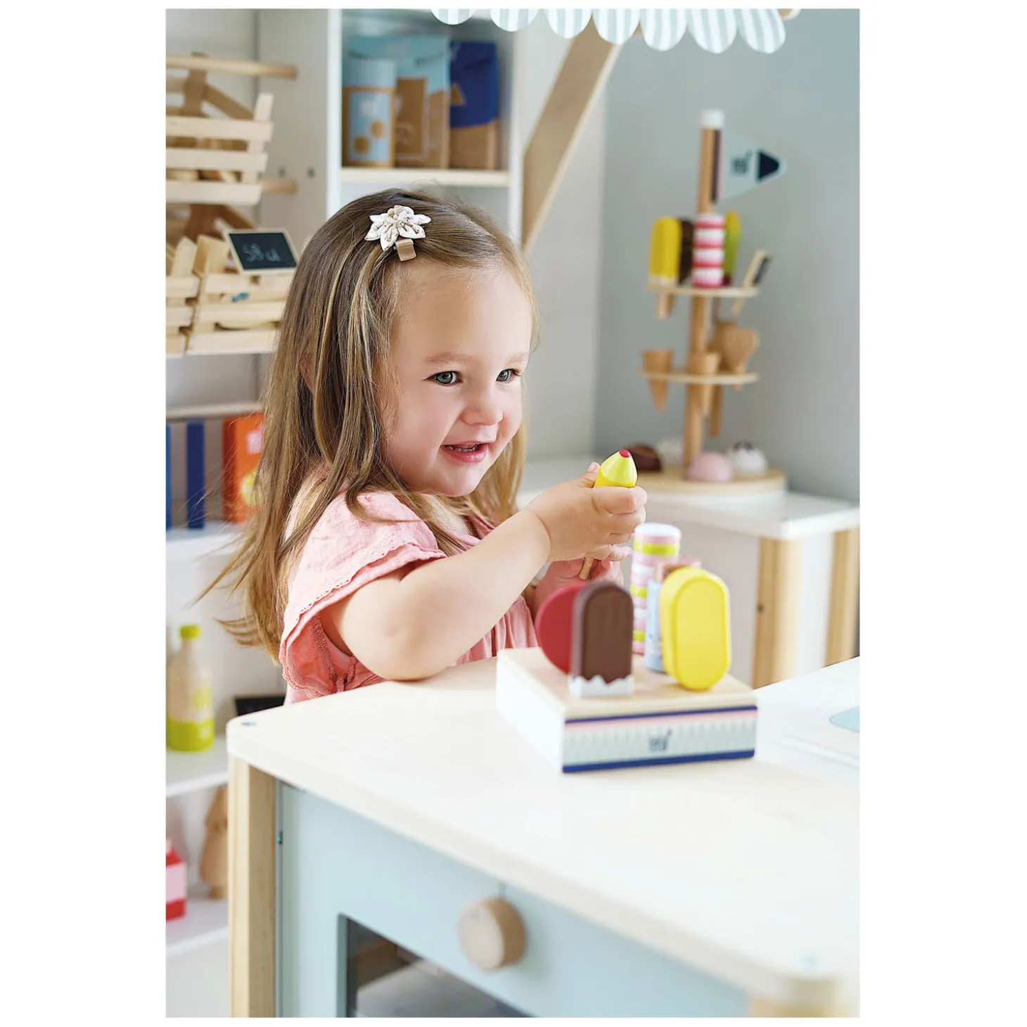 Ieder kind is dol op ijslollies! De populairste diepvriestraktatie voor onderweg hoort in elke kinderkamer voor realistisch rollenspel in het thema van een ijscafé. Geschikt vanaf 24 maanden.