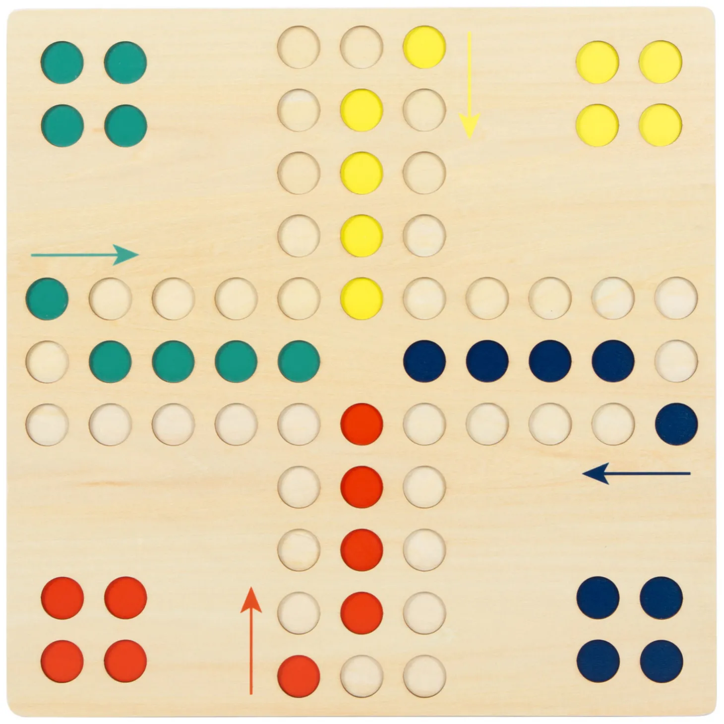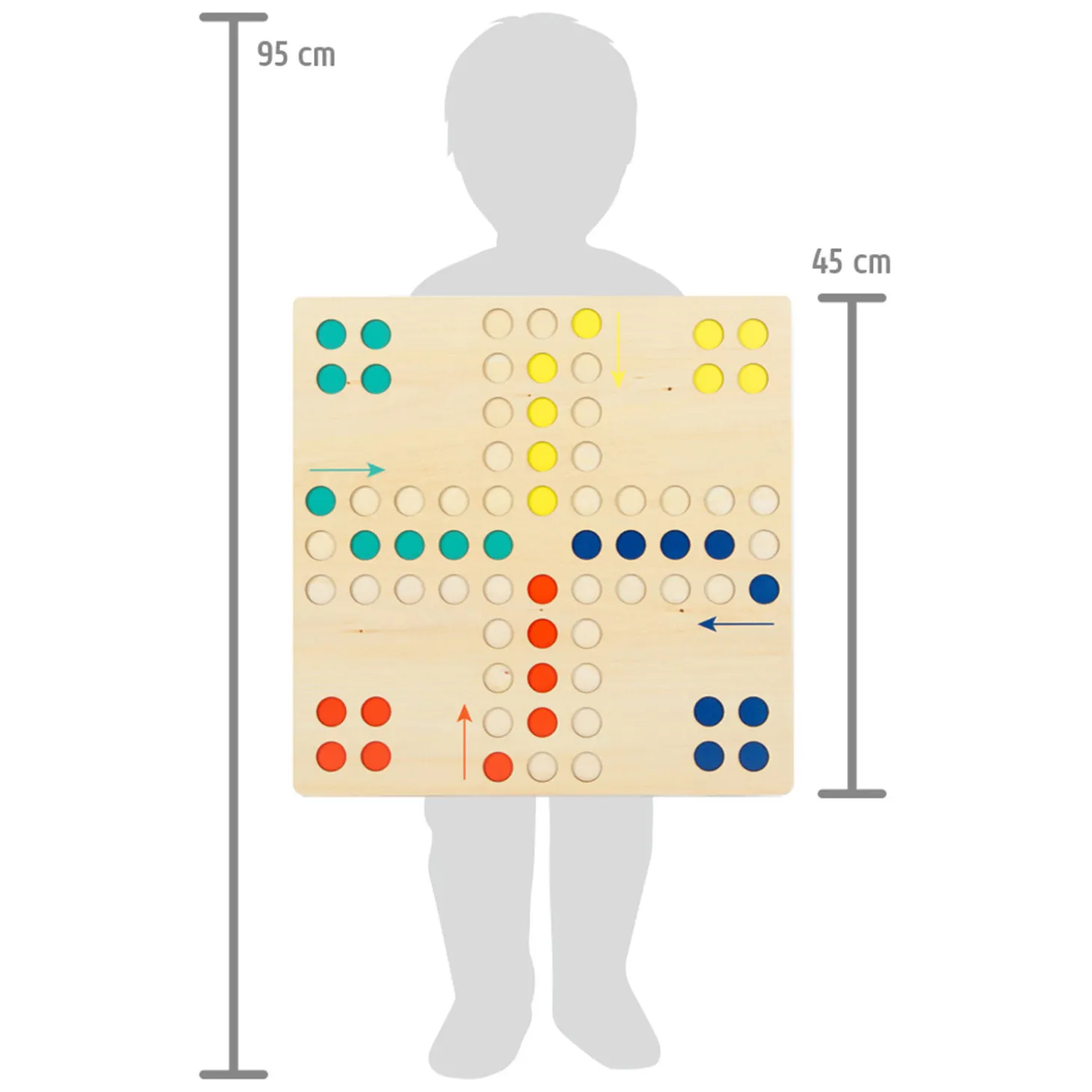 De dobbelsteen en de 16 speelstukken in de kleuren oranje, geel, blauw en mintgroen kunnen veilig worden opgeborgen in de meegeleverde stoffen tas. Dit klassieke spel staat garant voor veel speelplezier en hoort thuis in elke spellenkast. Het gebruik van de dobbelsteen traint kinderen ook spelenderwijs om te tellen.