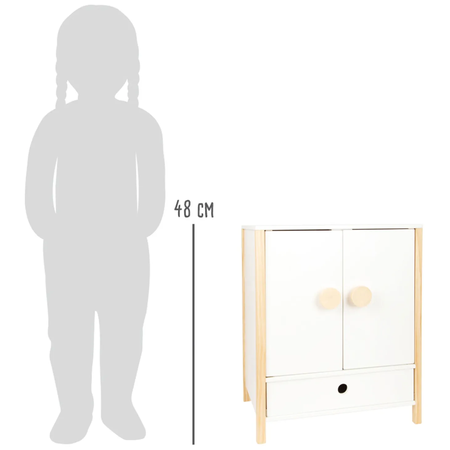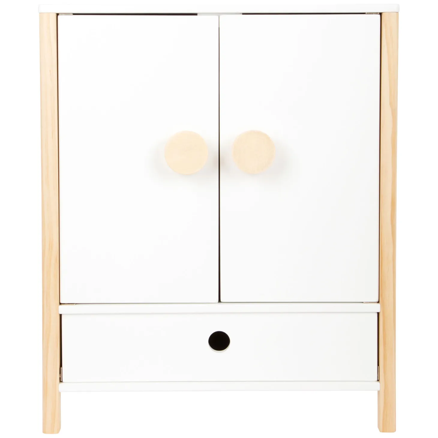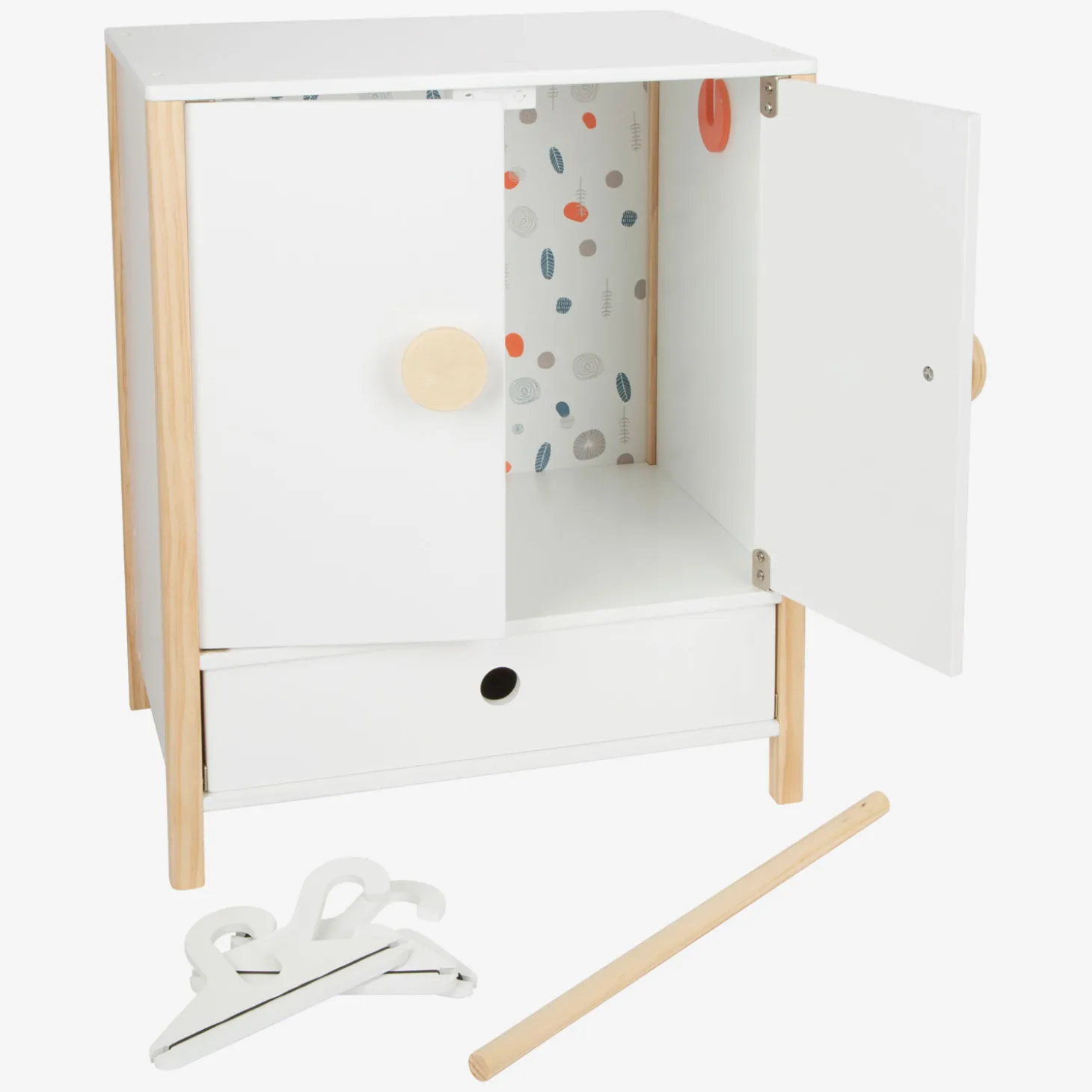 Het is een perfect modern poppenmeubel met zichtbare massief houten elementen die perfect in de kinderkamer passen. Reeds bestaande poppenkleerhangers passen in deze ruime kledingkast. Met poppen trainen de jonge poppenouders sociaal gedrag terwijl ze tegelijkertijd leren de boel netjes te houden. Het is een stijlvolle speelverrijking voor de kinderkamer met hoogwaardige afwerking!