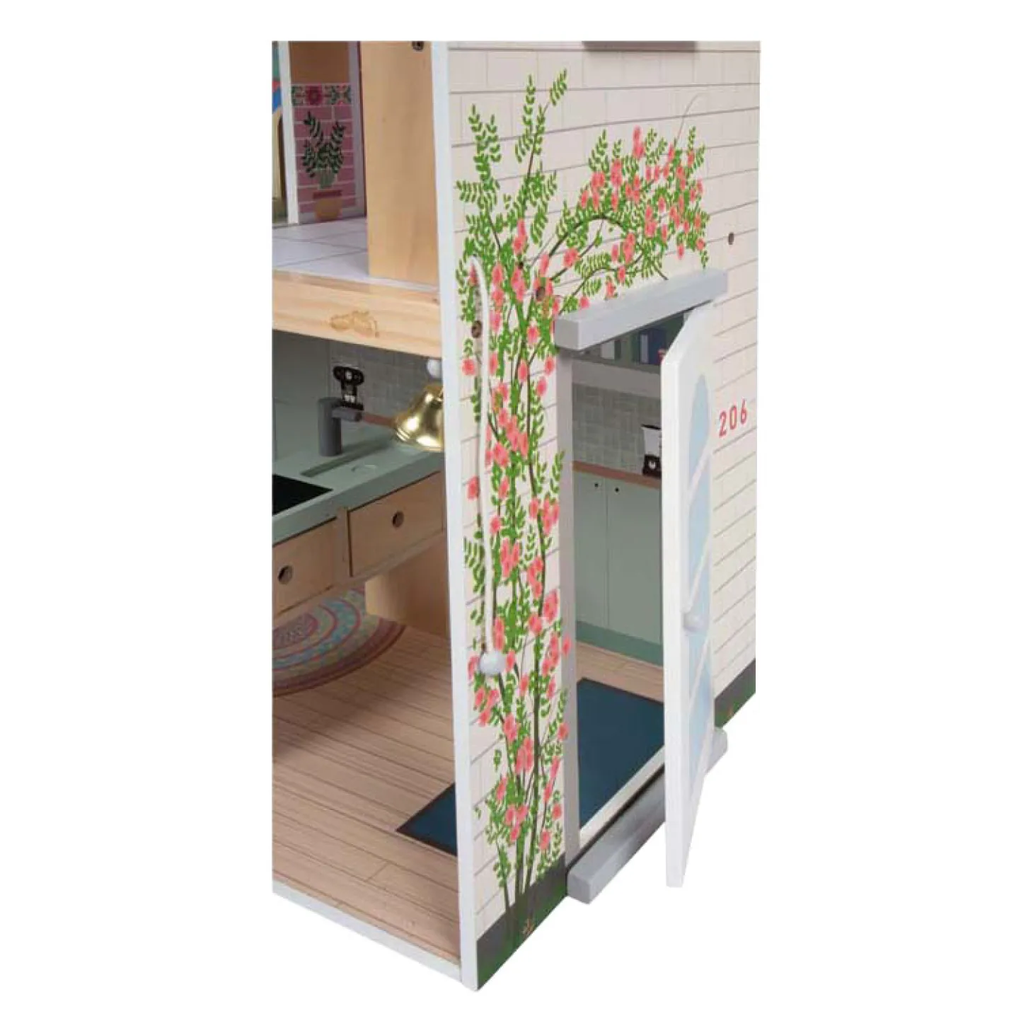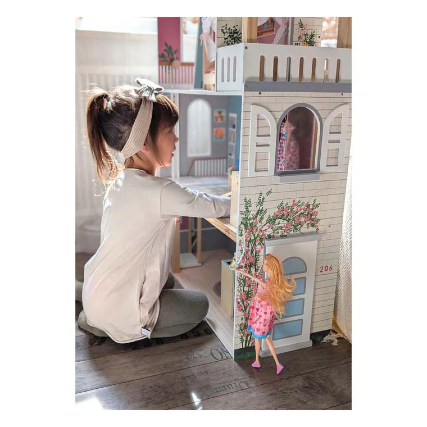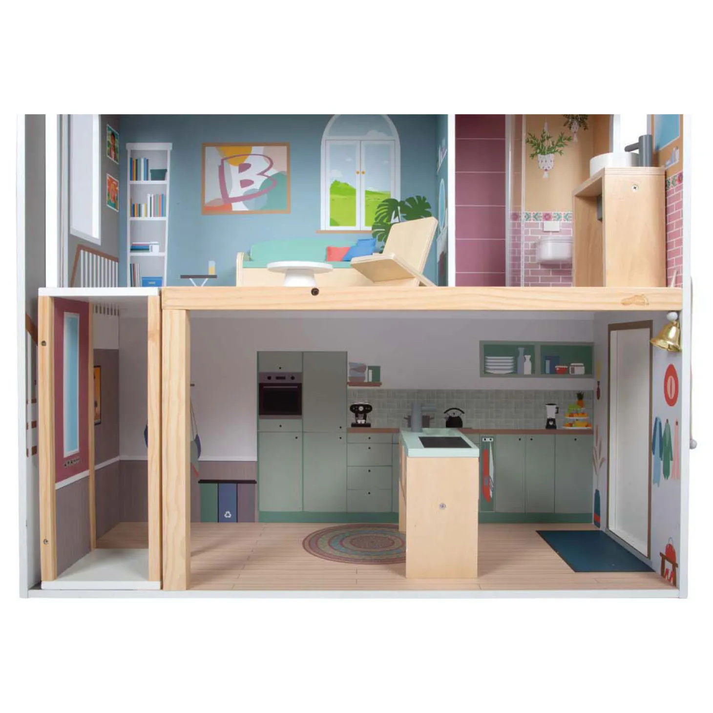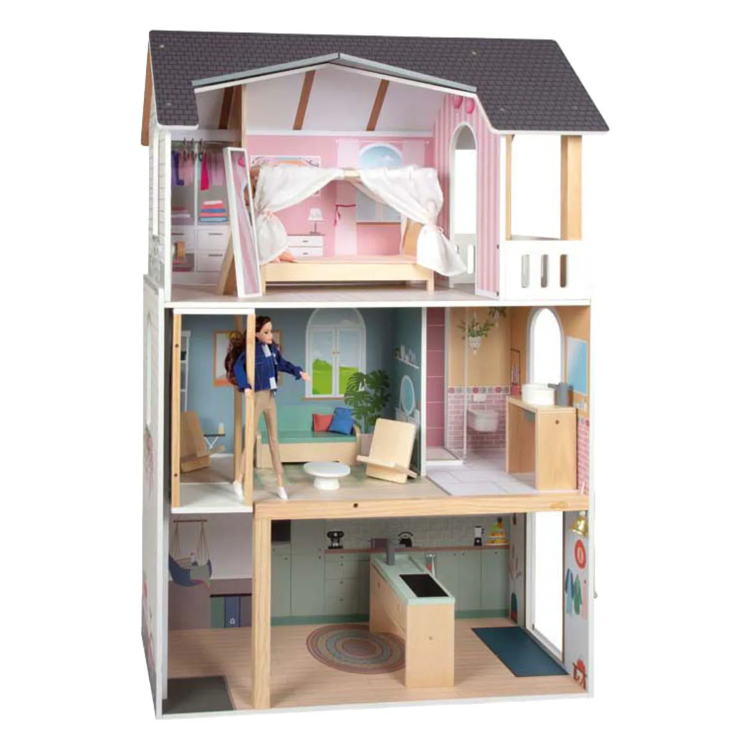 Door de open voorkant is het poppenhuis ideaal om in te spelen, zelfs door meerdere kinderen tegelijk. Of het nu gaat om inrichten, herinrichten of verhalen bedenken: het speelavontuur begint in het poppenhuis, waar geen dag hetzelfde is. De droomvilla is een plek waar creativiteit tot bloei komt. Tegelijkertijd bevordert vrij spelen de ontwikkeling van motorische, taal- en sociale vaardigheden.