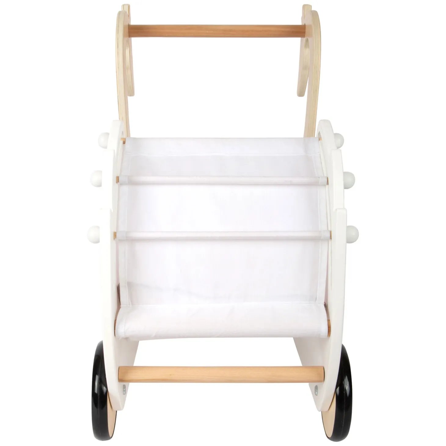 Ideaal voor veelzijdig spelen met poppen en samen wandelen! Deze hoogwaardige, stabiele poppenwagen past met zijn eenvoudige design stijlvol en decoratief in de kinderkamer en maakt indruk met het zichtbare houtmateriaal, de handgreep van massief hout en het wasbare katoenen textiel. Bovendien zorgen de afgeronde randen voor een bijzonder aangename haptische ervaring.