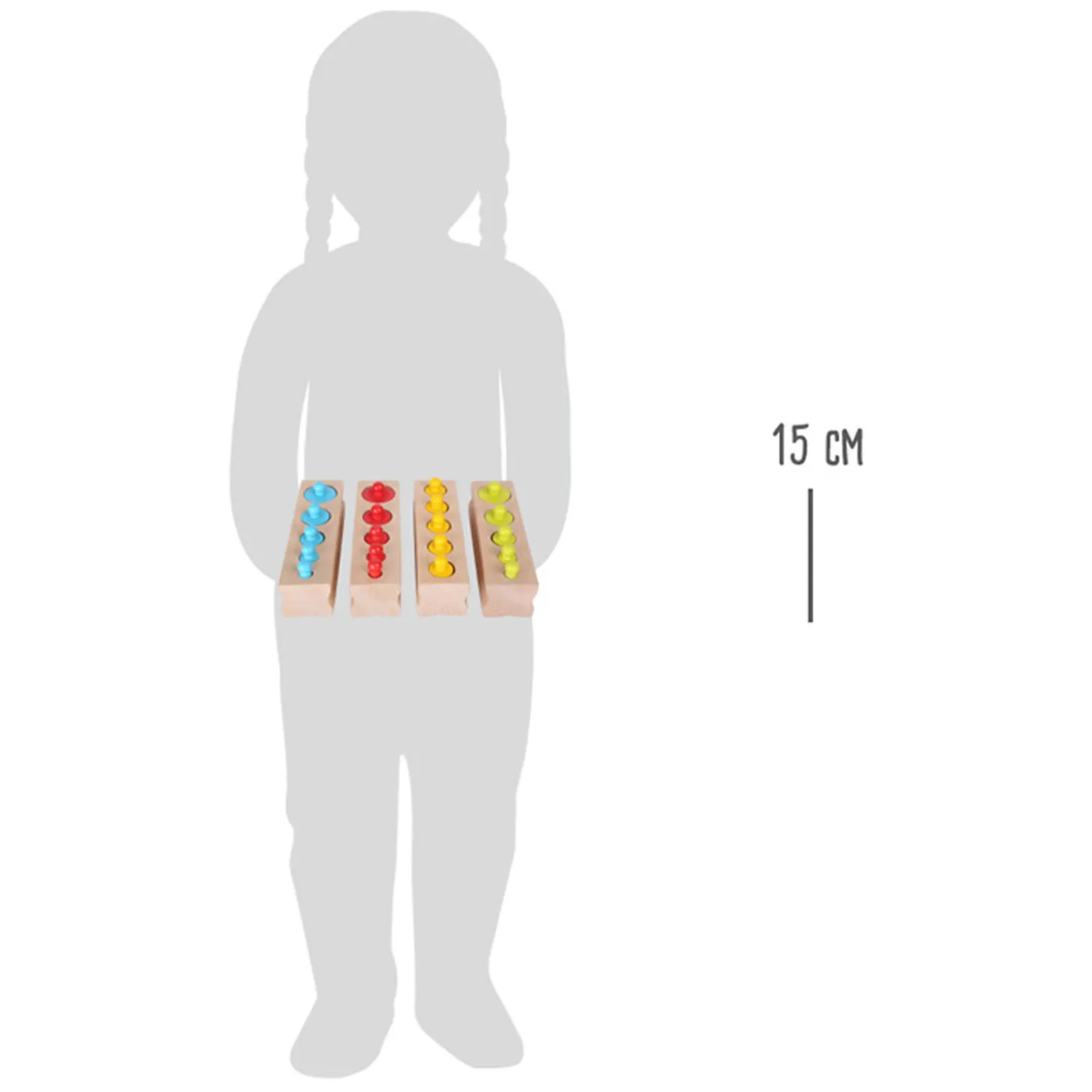 Dit speelgoed gemaakt van massief hout onderscheidt zich door zijn eenvoud en duidelijkheid. Met dit speeltje worden speciaal de zintuigen van voelen en aanraken getraind. De differentiatie van de verschillende gewichten en de taak van organiseren zullen kinderen helpen bij de ontwikkeling van hun perceptie, intelligentie en persoonlijkheid.