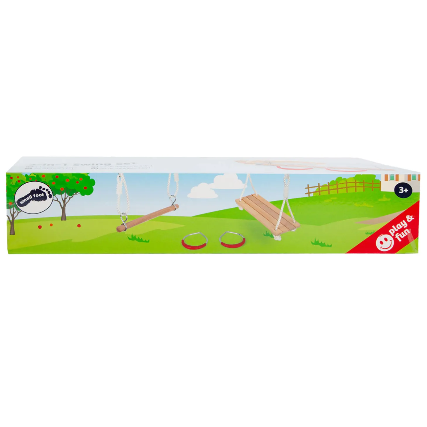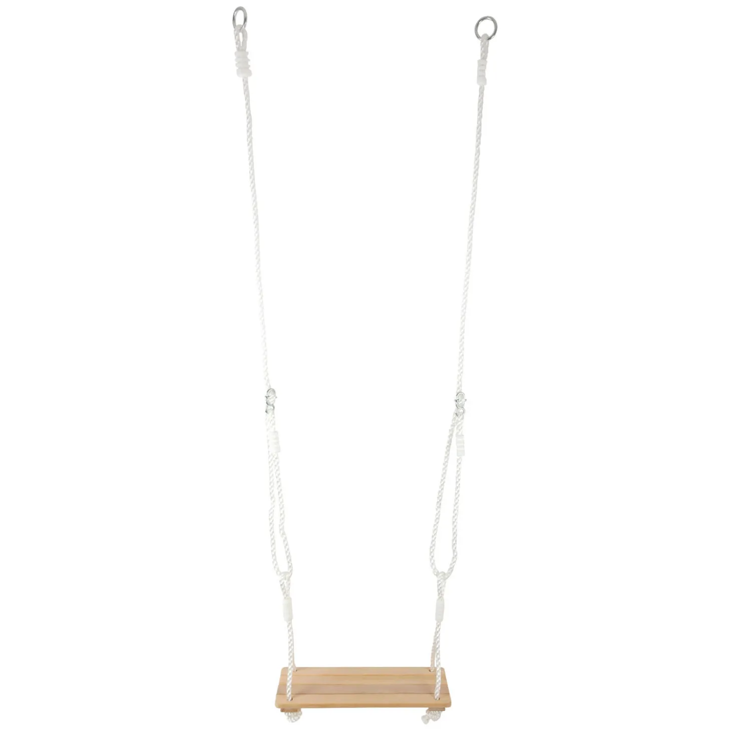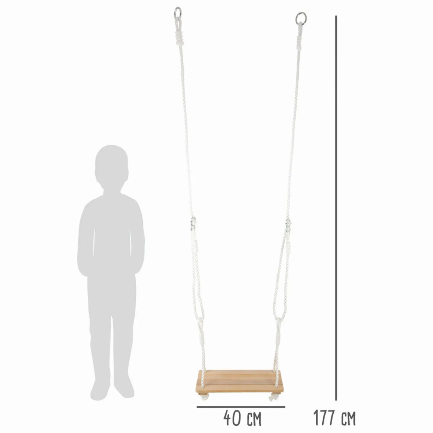 Lengte trapezetouw: ca. 110 cm, trapezelengte: ca. 48cm, Ø ca. 3 cm, schommeltouw lengte: ca. 177 cm, schommel ca. 40 x 16 x 2,5 cm.