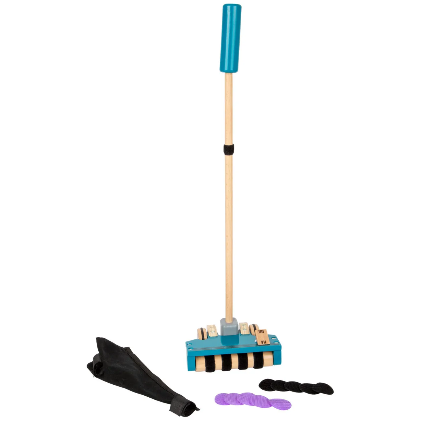 Deze gekleurde klittenbandstukken worden vervolgens veilig opgeborgen in de vacuümzak met klittenbandsluiting. De met rubber afgewerkte wielen rollen stil en voorkomen wegglijden. Na het spelen kan dit speelgoedhuishoudapparaat staand worden opgeborgen. De gekleurde stukken klittenband zijn goed zichtbaar. Met deze speelgoedstofzuiger zijn kinderen goed uitgerust om het huis eens goed schoon te maken!
