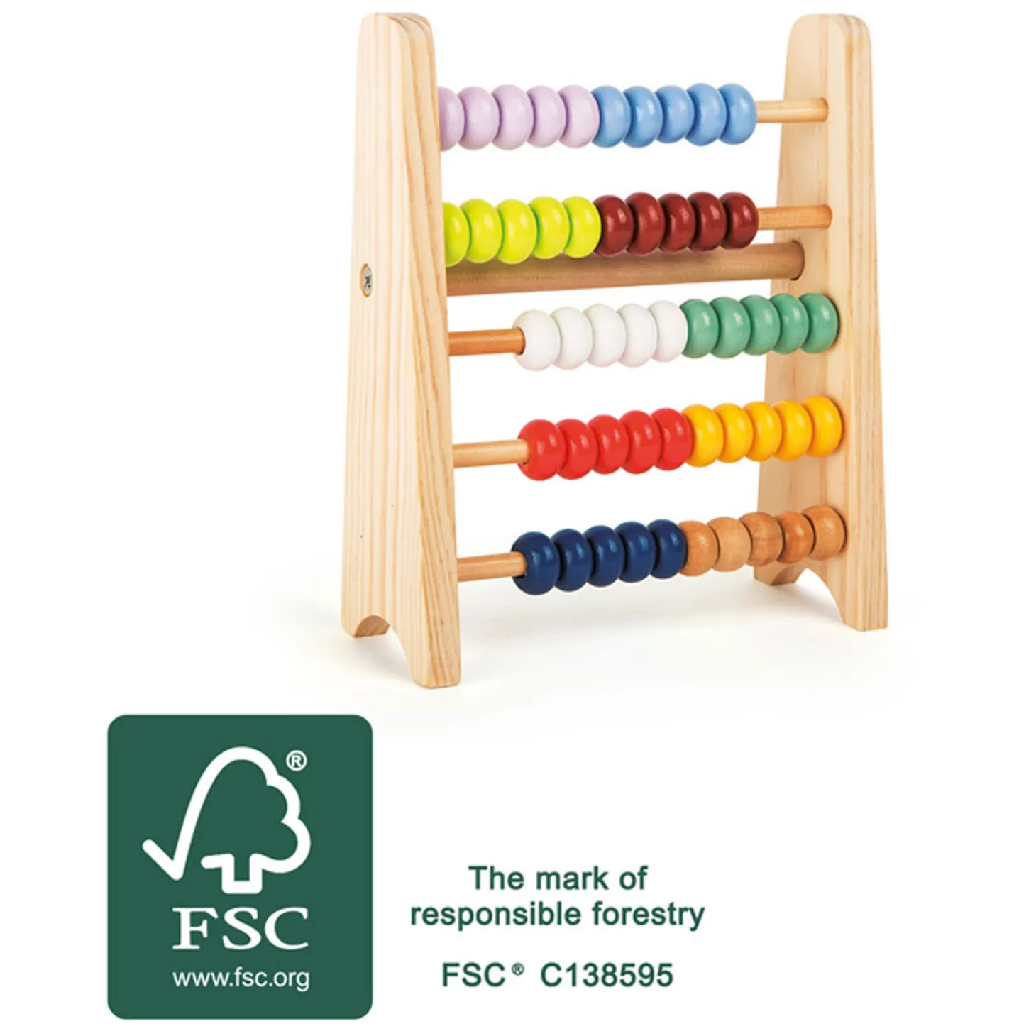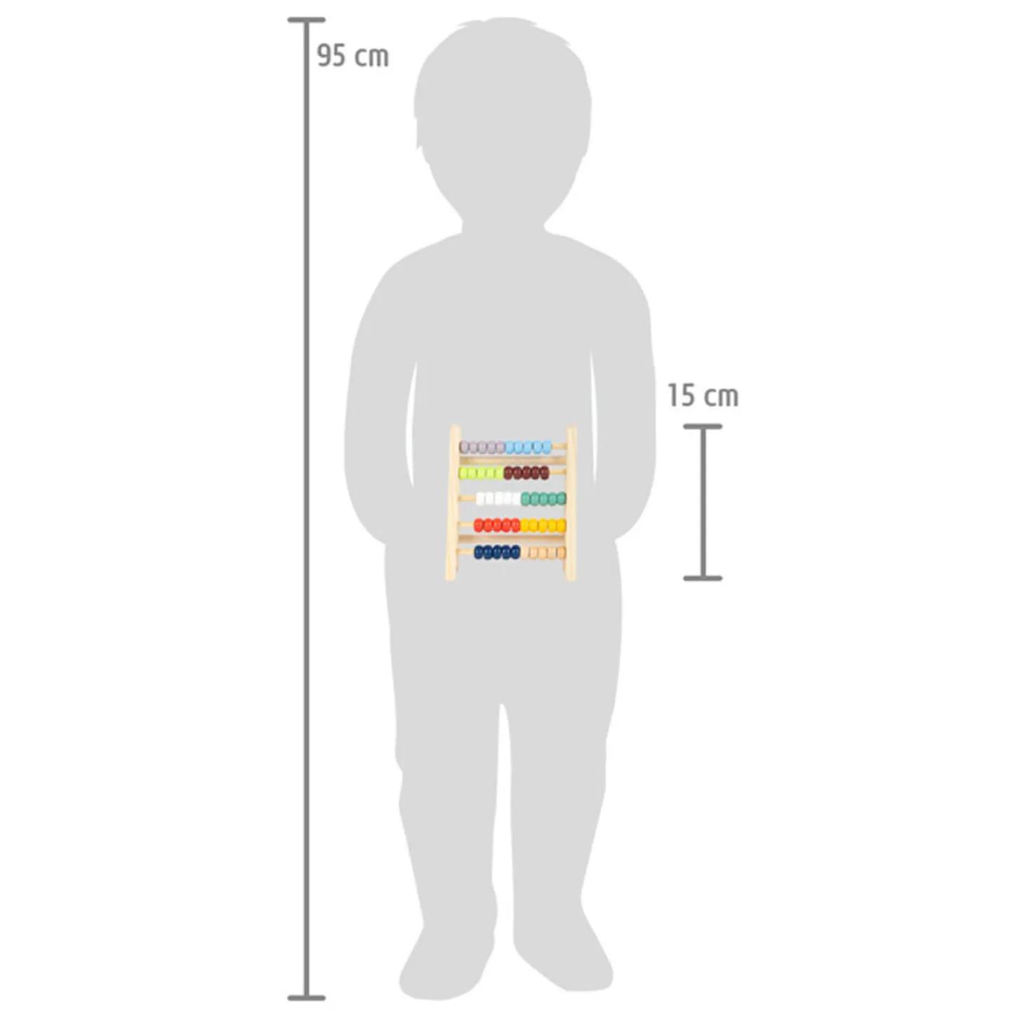 Felgekleurde, beweegbare kralen in vijf rijen leren de gebruiker over numerieke verhoudingen. In dit kleinere formaat past deze rekenliniaal in elke schooltas!