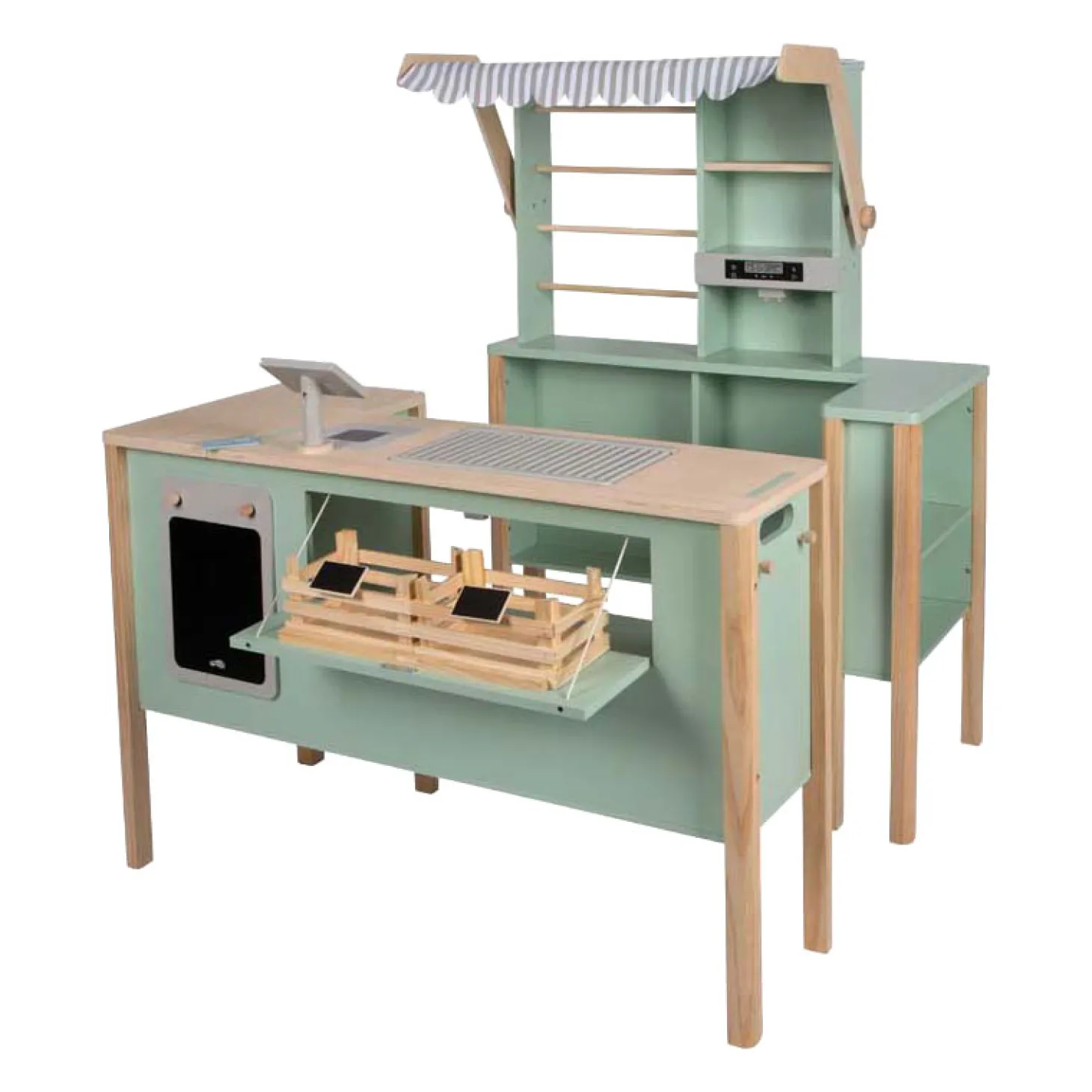 Stimuleert creatief rollenspel. De gedetailleerde uitrusting zorgt voor een realistische speelervaring, terwijl het verfijnde ontwerp ruimte biedt aan meerdere kinderen tegelijk. De modules kunnen flexibel worden ingedeeld en tegen elkaar worden geschoven om ruimte te besparen. Een stijlvol, duurzaam speelgoed dat de verbeelding en sociale interactie stimuleert!