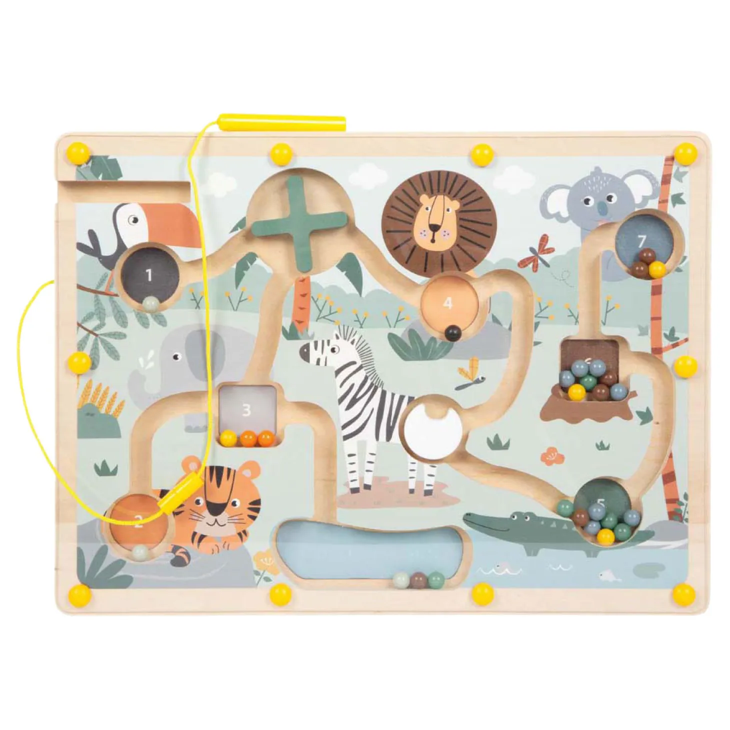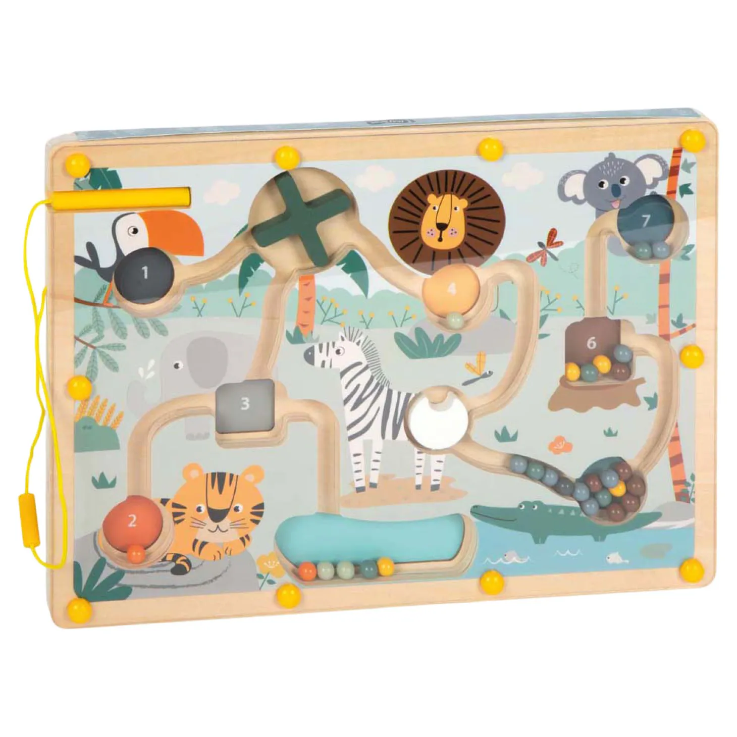 De combinatie van kleur- en cijferoefeningen met een leuk behendigheidsspel maakt dit schuiflabyrint tot een leerzaam en langdurig speelplezier. Dankzij het handige bevestigingsbandje kan de magnetische pen niet kwijtraken, waardoor het spel ook perfect is om mee te nemen onderweg.