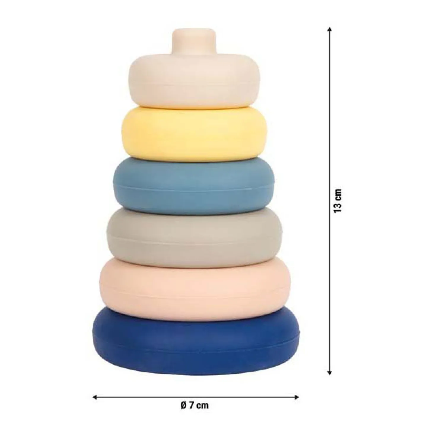 De siliconen stapeltoren is een veelzijdig motorisch speelgoed dat baby’s en peuters helpt bij het zetten van belangrijke ontwikkelingsstappen. De 6 torenelementen van verschillende grootte kunnen veilig op elkaar worden gestapeld zonder middenstang – een pluspunt in veiligheid en een ideale kennismaking met de wereld van het stapelen. Tegelijkertijd worden creativiteit en verbeeldingskracht gestimuleerd wanneer de elementen vrij worden gecombineerd en opnieuw worden gestapeld. Of het nu als toren in de kinderkamer is, als speelgoed in de zandbak of als badspeelgoed in bad: deze siliconen stapeltoren is robuust, flexibel en veelzijdig, waardoor hij perfect is voor dagelijks gebruik door jonge ontdekkingsreizigers.