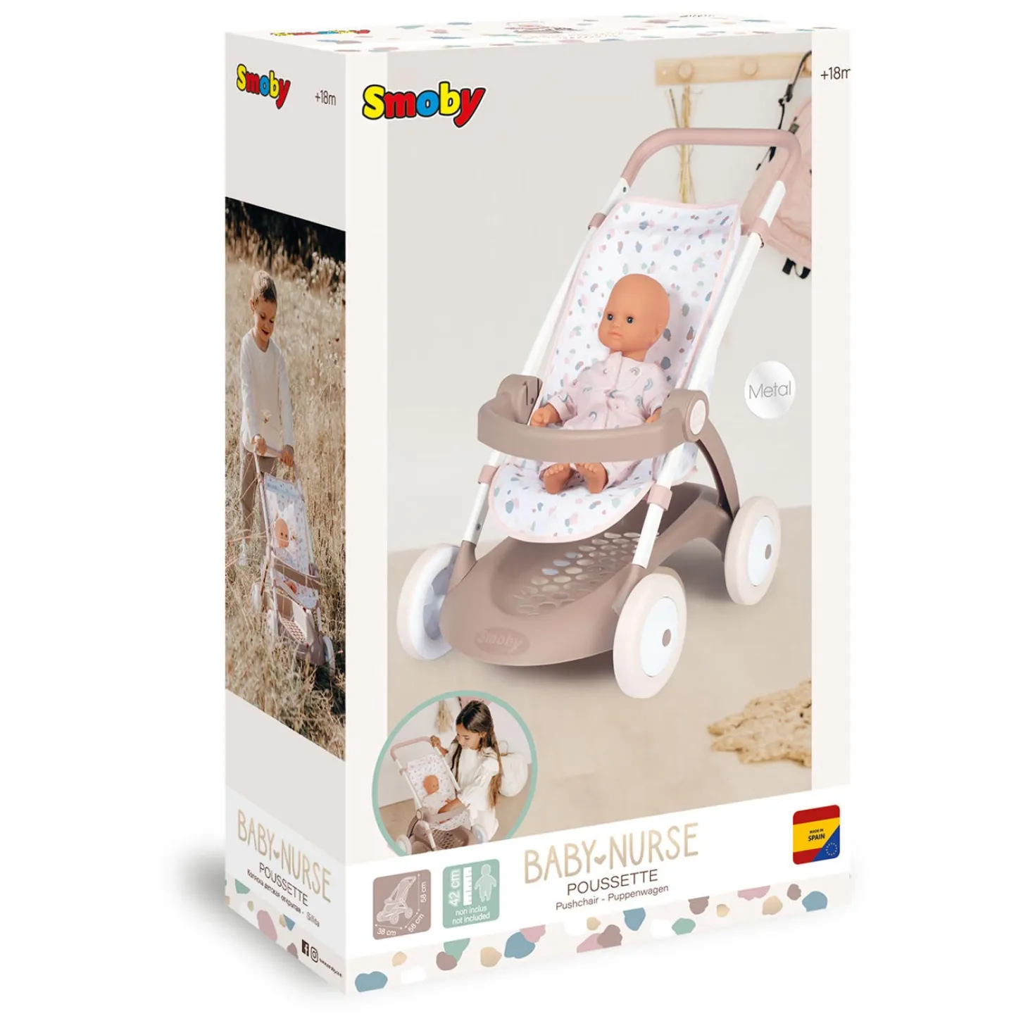De Baby Nurse Poppenwagen is, net als veel andere poppenspeelgoed van Smoby, al geschikt voor peuters vanaf 18 maanden. Ook de allerjongsten kunnen dus veilig spelen met deze poppenwagen, zodra ze kunnen lopen. Dankzij het robuuste frame met grote wielen is het spelen met deze poppen