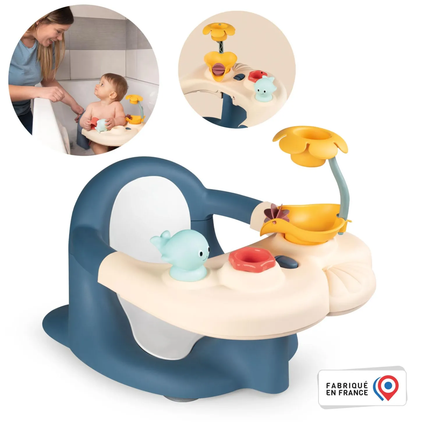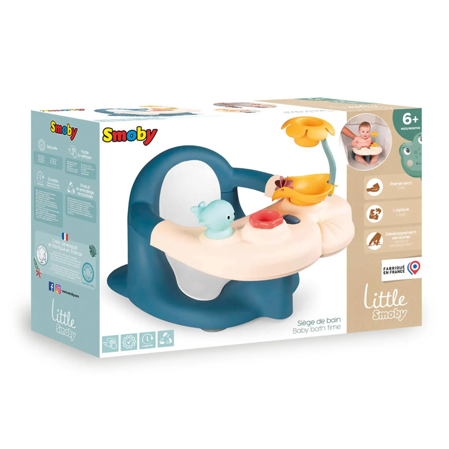 Gemaakt van comfortabel kunststof en geschikt voor baby’s en kinderen vanaf 6 maanden oud. Gebruik dit Smoby badzitje altijd onder toezicht van een volwassene.