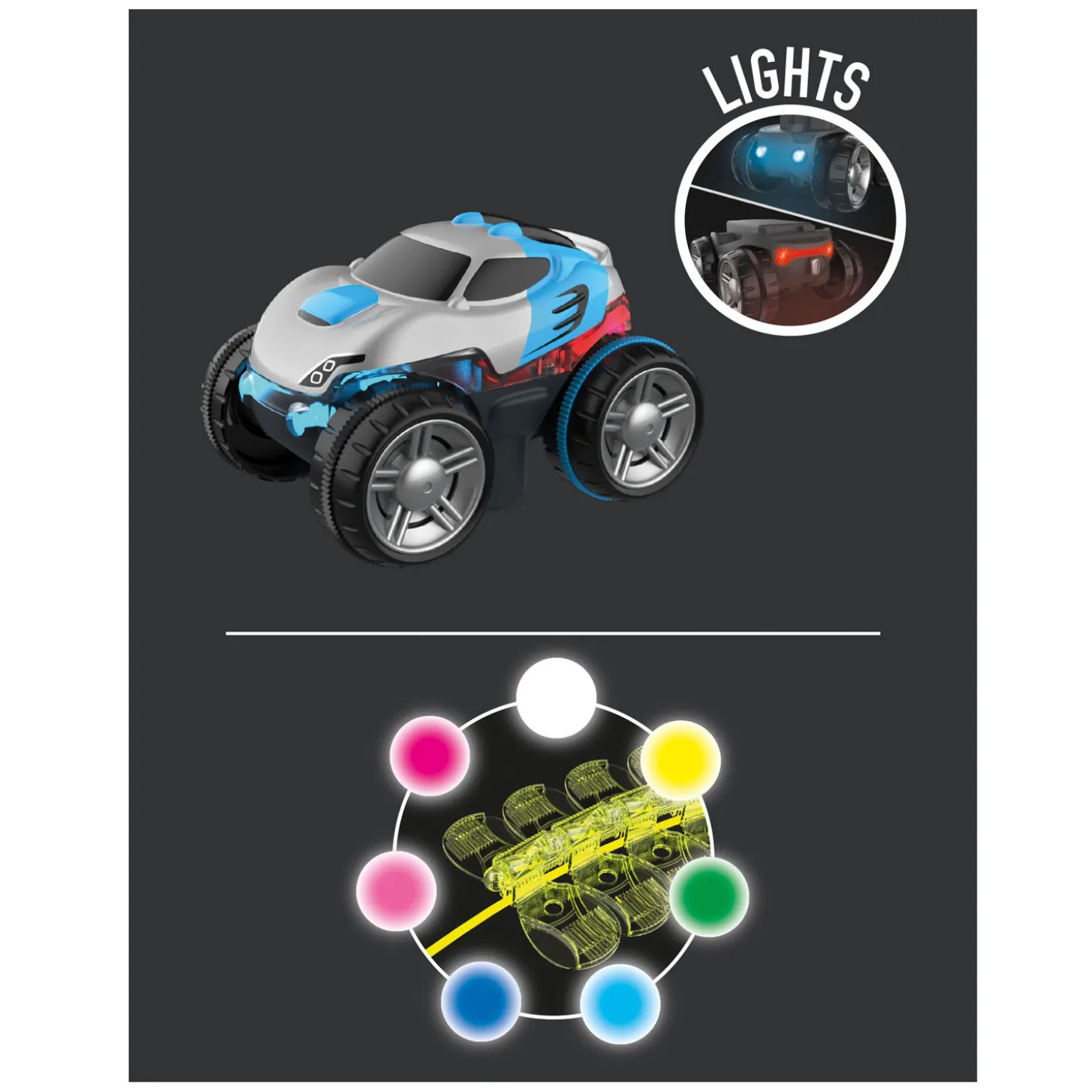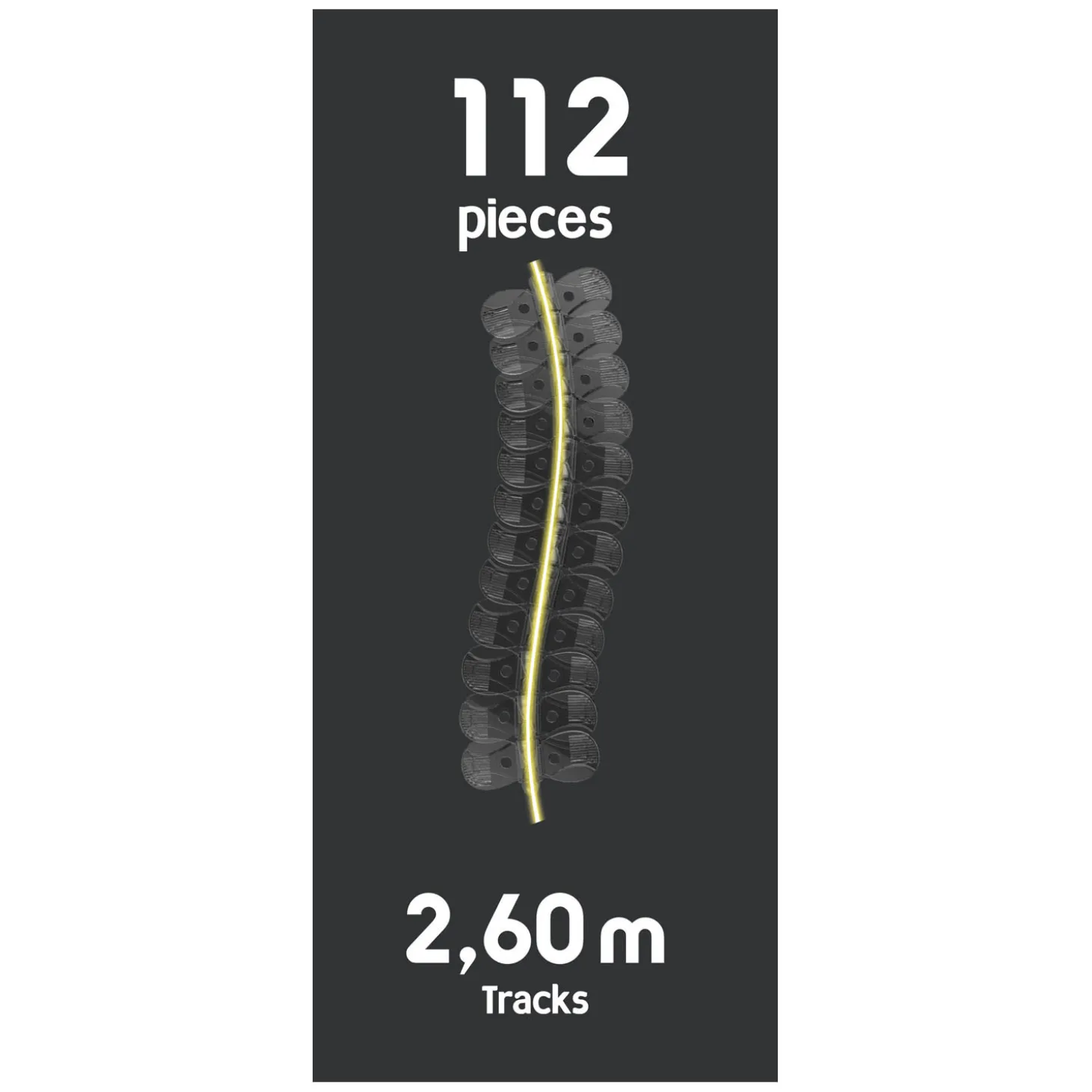 Maak een looping, leg de baan op z’n kop of steek ‘m zo over van de tafel naar de stoel. Niks is te gek met de Smoby FleXtreme Neon Set! Deze 112-delige raceset bestaat uit maar liefst 2,6 meter aan baan met lichtvezels, een verlichte tunnel en elektrische auto met verlichting. Er zijn verschillende standen en maar liefst 7 kleuropties voor het verlichten van deze vette raceset. In het donker zie je een waar lichtspektakel als de auto over de baan racet.