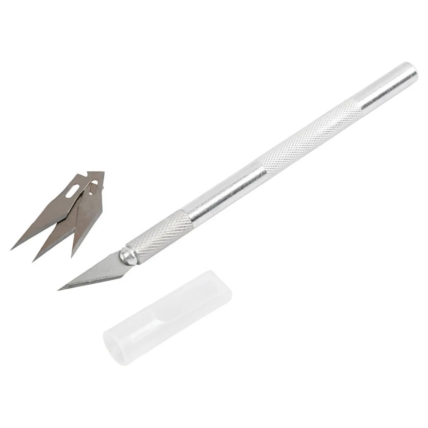 Snijmes met structuur op het handvat voor extra grip. Incl. 3 vervangende mesjes.