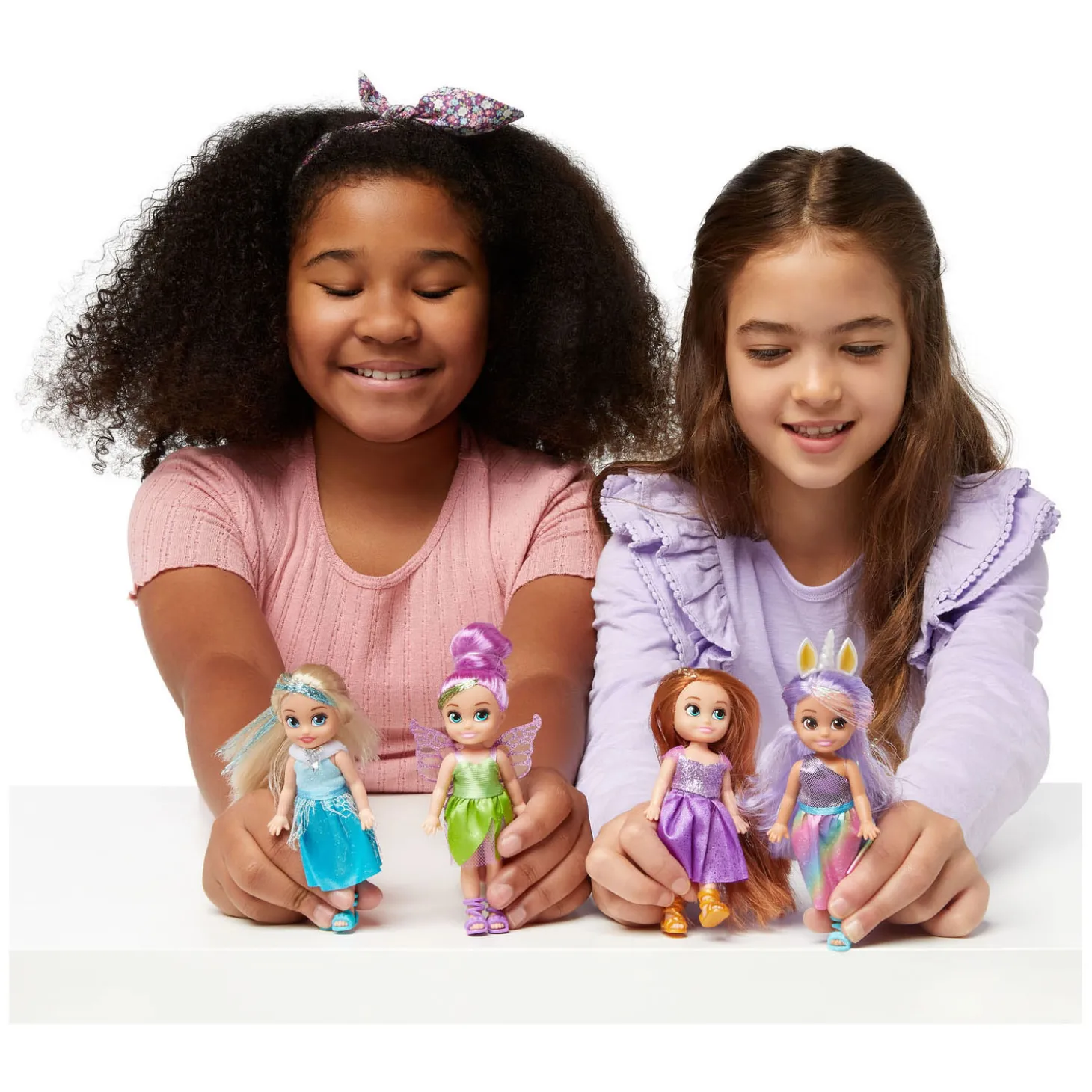 Elke mini pop heeft een unieke uitstraling en persoonlijkheid met haar glinsterende haarhighlight, gedetailleerde winterjurken met details van imitatiebont en elegante bijpassende schoenen. Het lange haar is superzacht en glad en dus perfect om te borstelen en te stylen, en de poppen zijn ook beweegbaar!