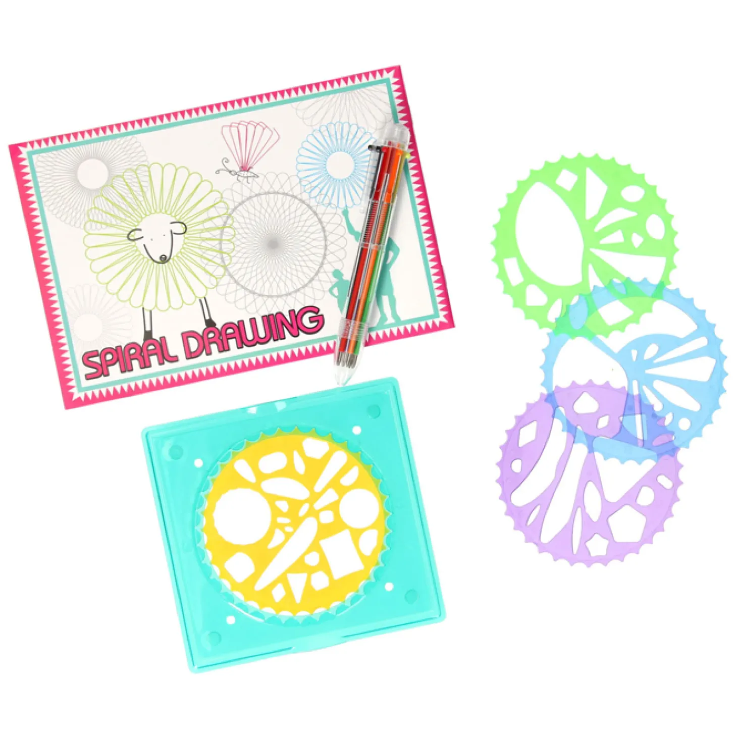 •4 transparante tekenwielen met meer dan 65 vormen