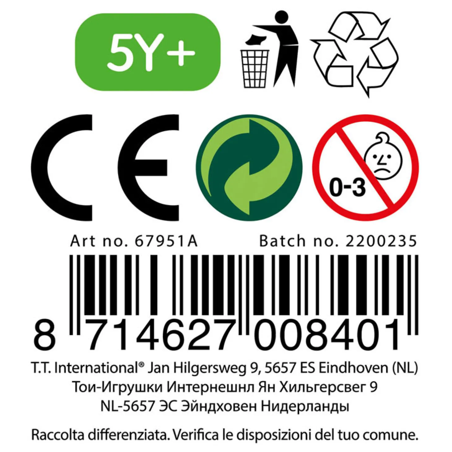 - Waarschuwing: Niet geschikt voor kinderen onder de 3 jaar ivm kleine onderdelen.