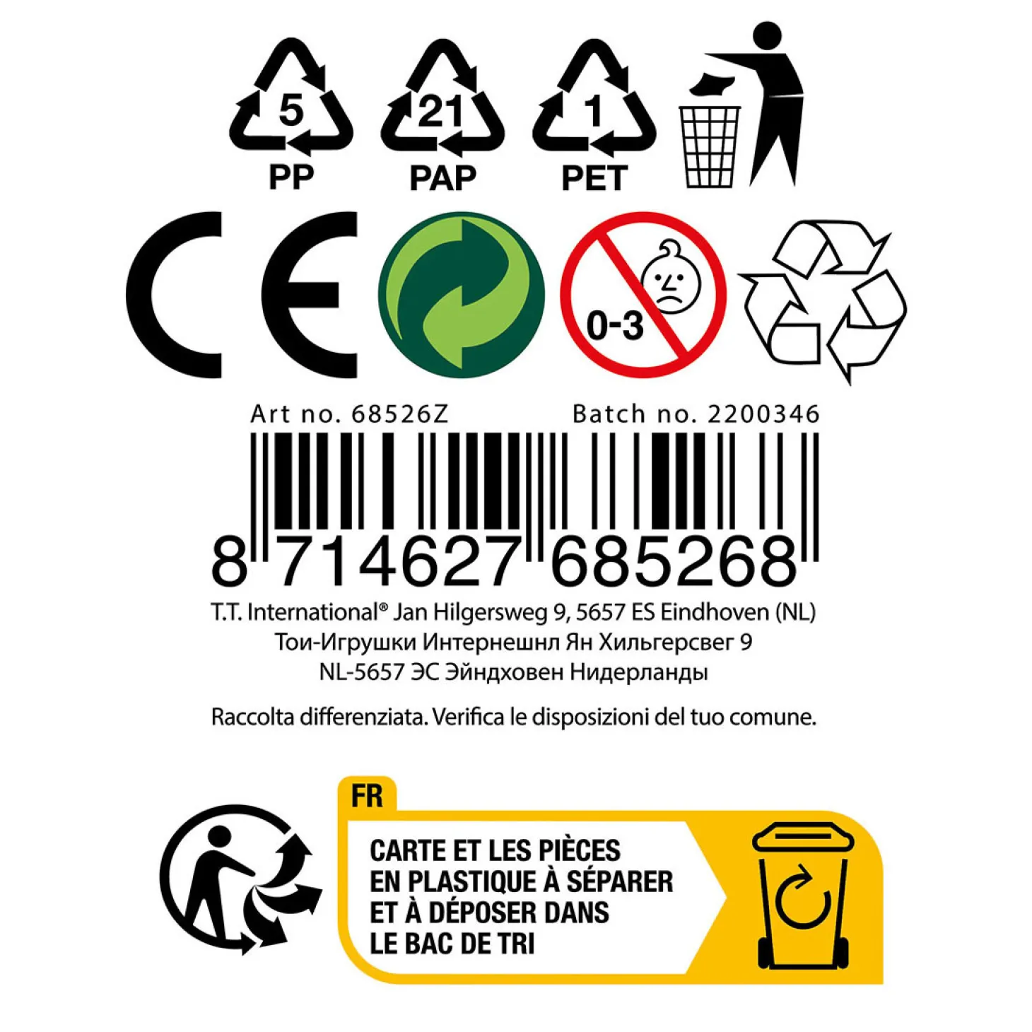 - Waarschuwing: Niet geschikt voor kinderen onder de 3 jaar ivm kleine onderdelen.
