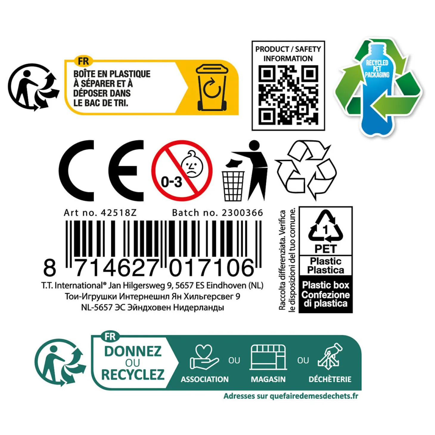 - Waarschuwing: Niet geschikt voor kinderen onder de 3 jaar ivm kleine onderdelen.