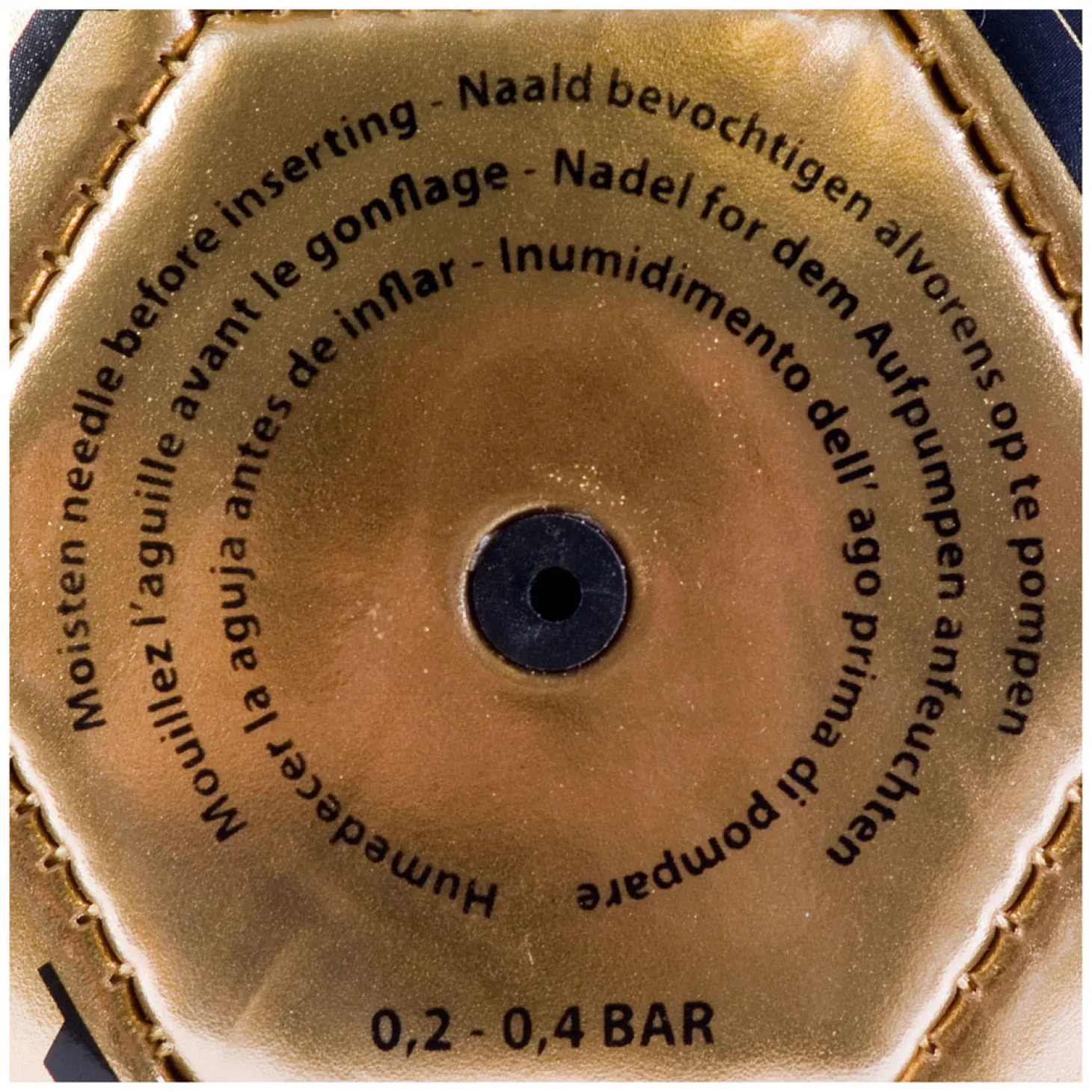 SportX Metallic mini voetbal, 2 assorti in gouden uitvoering met zwarte accenten. Gewicht: 160-180 gram. Materiaal: metallic pvc. Diameter: 16 cm. Dikte van de lagen: 2,7 mm. Wordt onopgeblazen geleverd.Prijs per stuk, verschillende uitvoeringen/kleuren worden door elkaar geleverd.