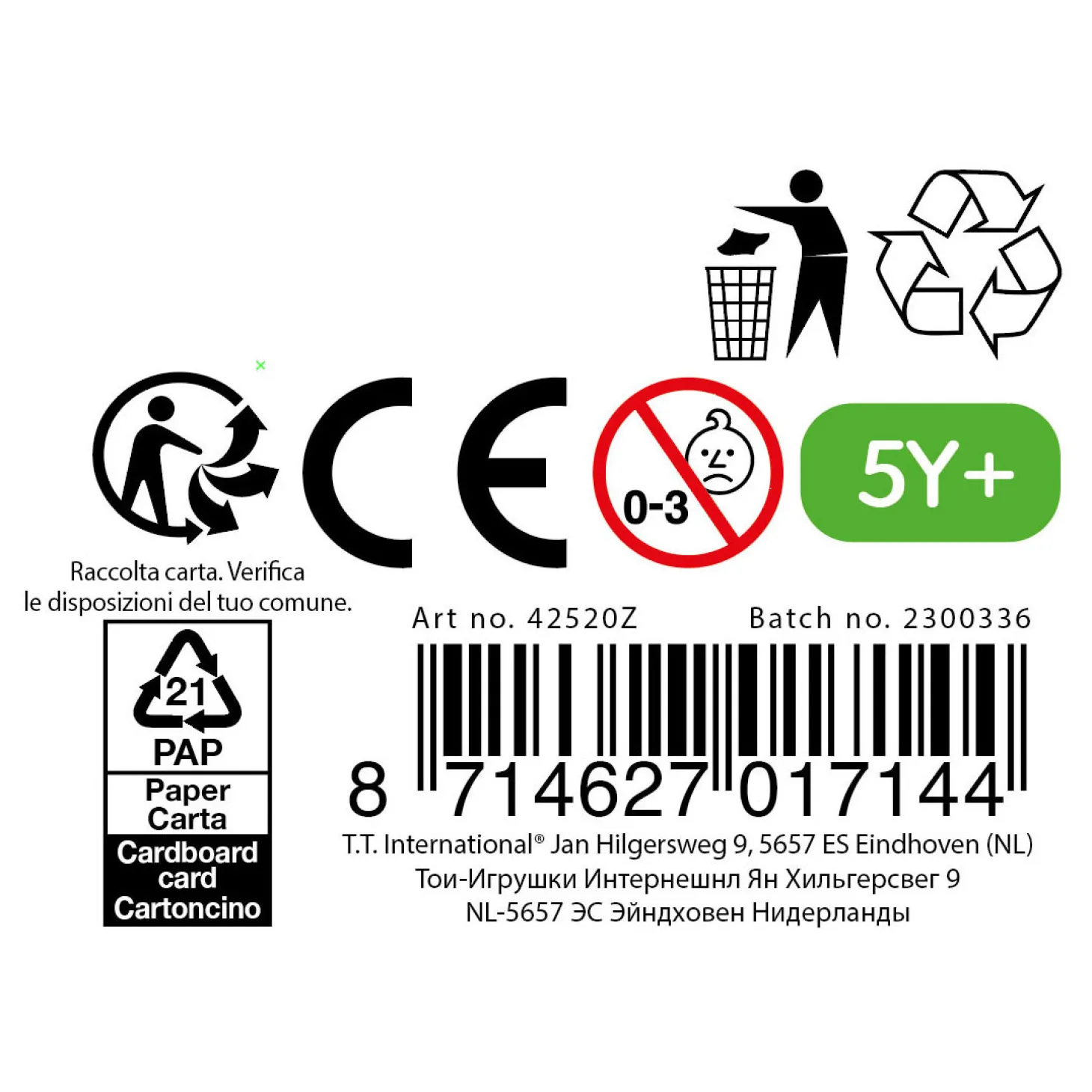 - Waarschuwing: Niet geschikt voor kinderen onder de 3 jaar ivm kleine onderdelen.