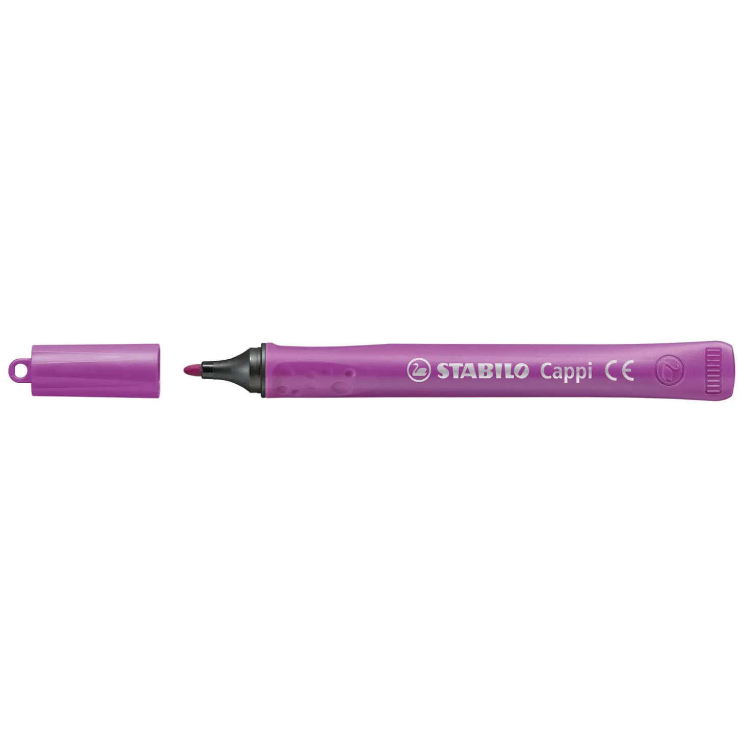 Viltstiften vervangen omdat ze zijn uitgedroogd doordat de dop kwijt is… we kennen het allemaal en het is heel vervelend. Met de STABILO Cappi is dit verleden tijd. Dankzij de unieke en praktische dop ring, waar de doppen aan geregen kunnen worden, raakt er nooit meer een dop kwijt.