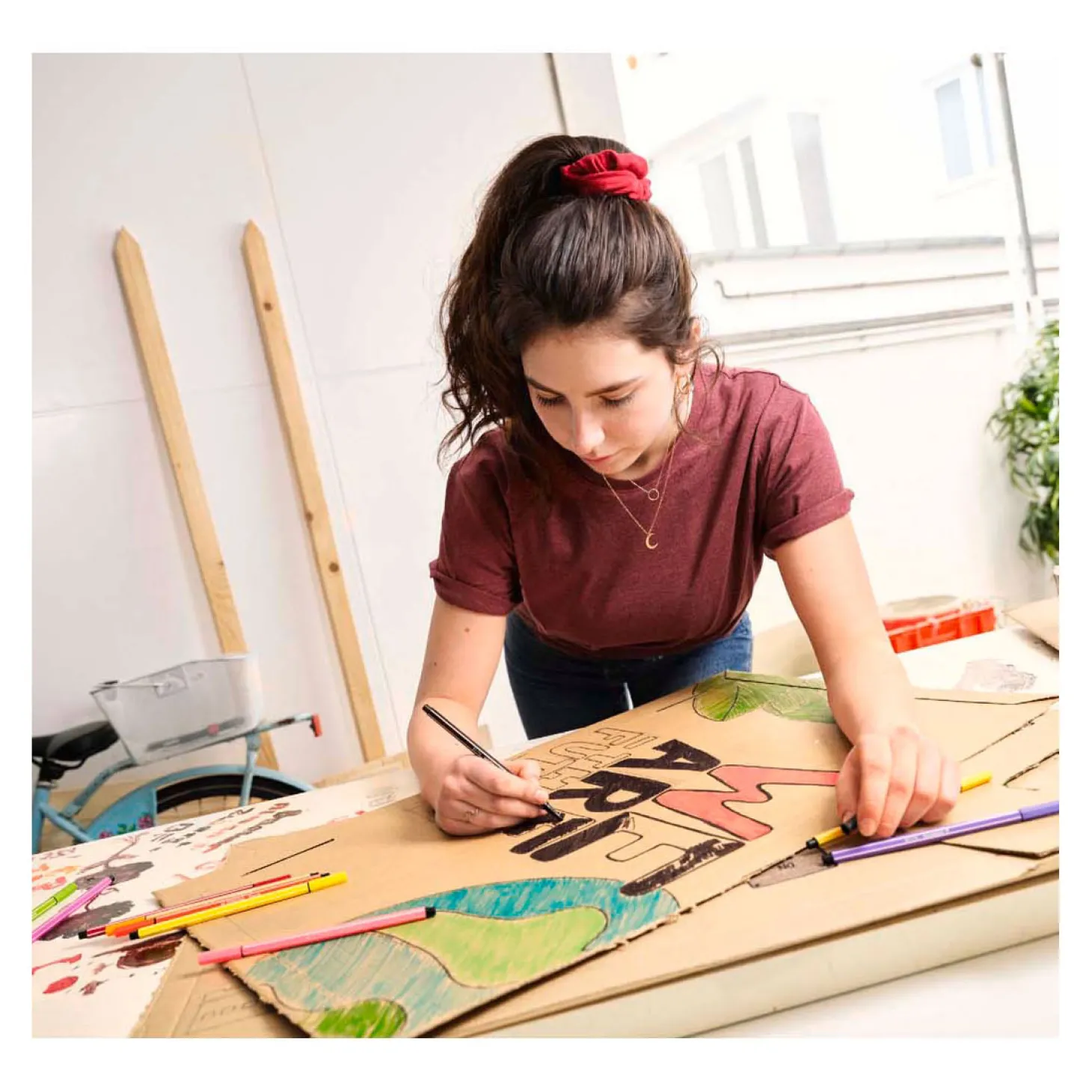 De STABILO Pen 68 viltstiften zijn viltstiften van de allerhoogste kwaliteit en bieden oneindig veel kleurmogelijkheden. De punt is 1 mm dik voor krachtige lijnen en het inkleuren van vlakken. De robuuste punt zorgt voor een gelijkmatige inktafgifte. De viltstift kan 24 uur zonder dop zonder dat de punt uitdroogt. De kleuren zijn intens en zeer goed dekkend.