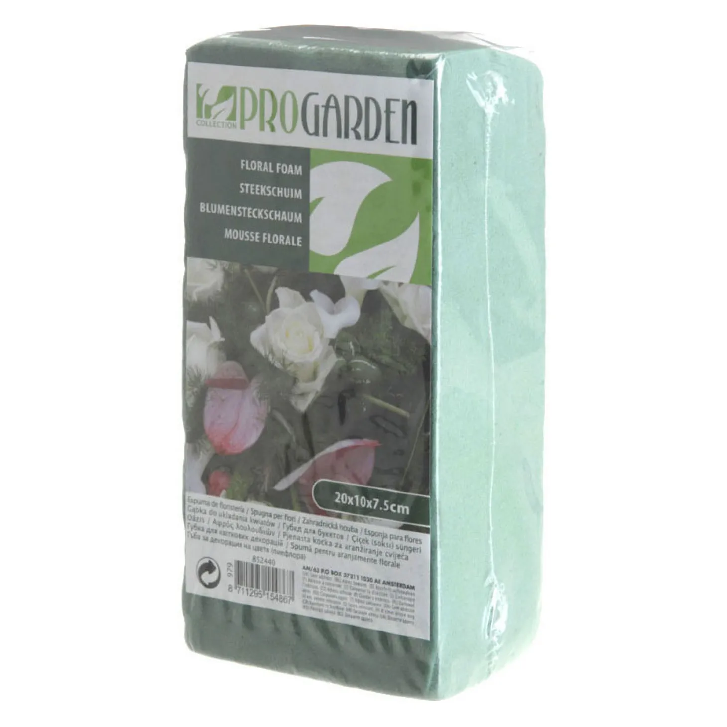 Steekschuim blok van 20 x 10 x 7,5 centimeter groot. Geschikt voor het maken van een bloemenkrans met echte bloemen of kunstbloemen.