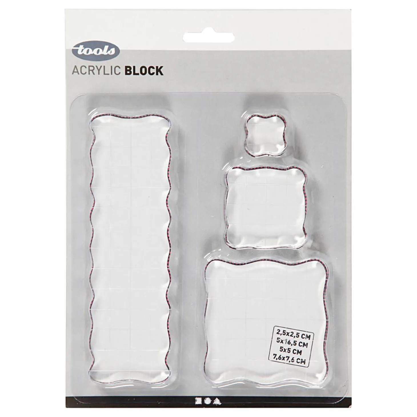 Stempelblok van transparant acryl met hulplijnen. Te gebruiken i.c.m. silicone stempels (apart verkrijgbaar)