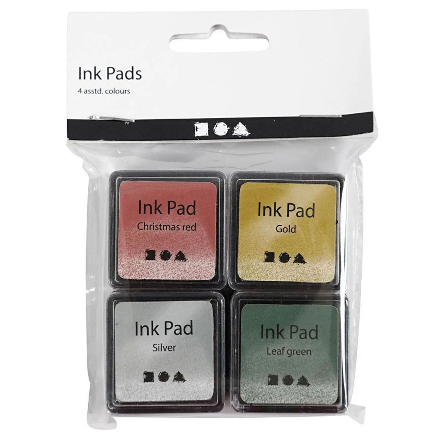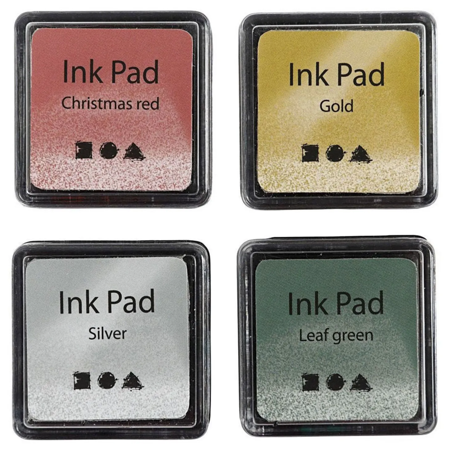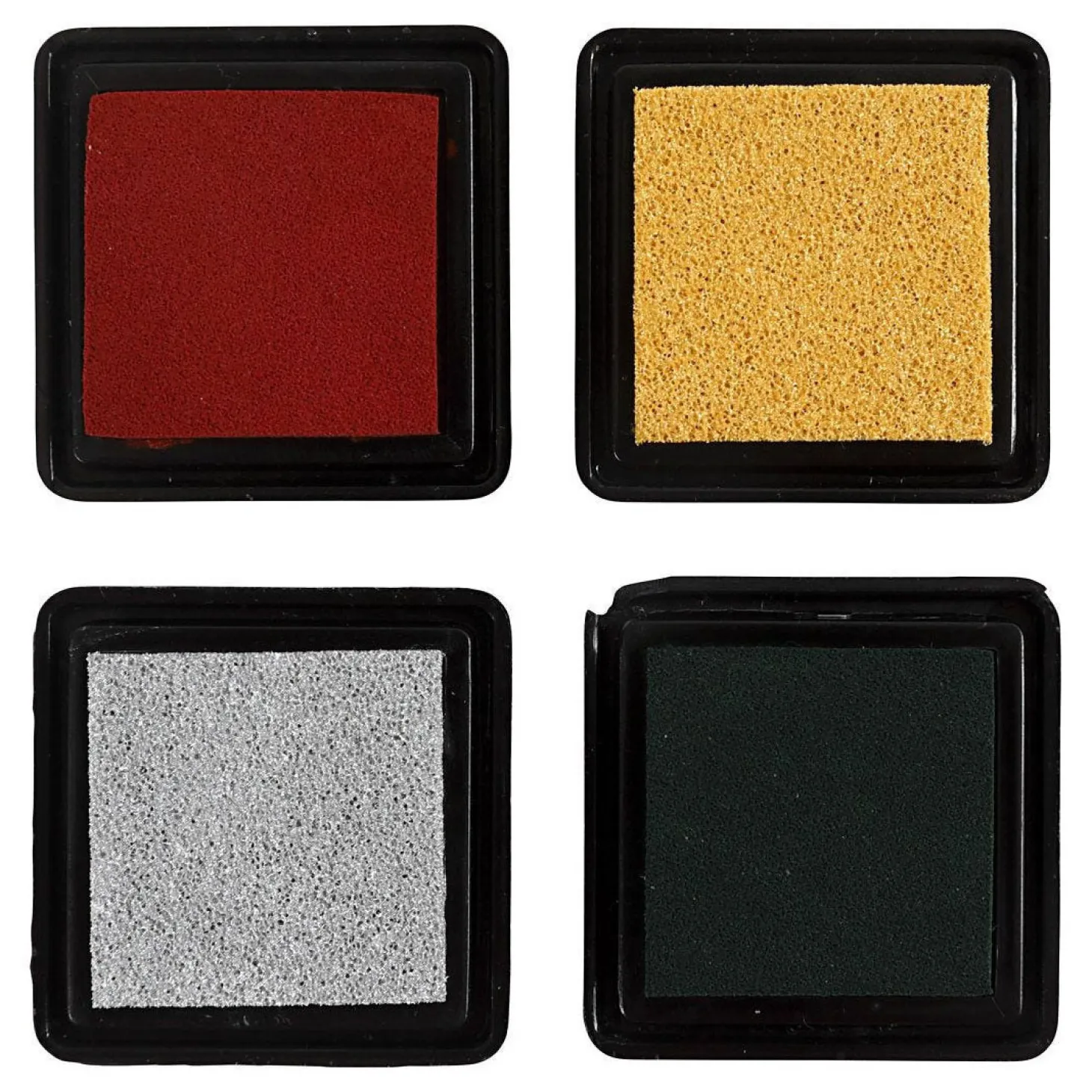 Stempelinkt Goud/Lime Groen/Kerstrood/Zilver, 4st.