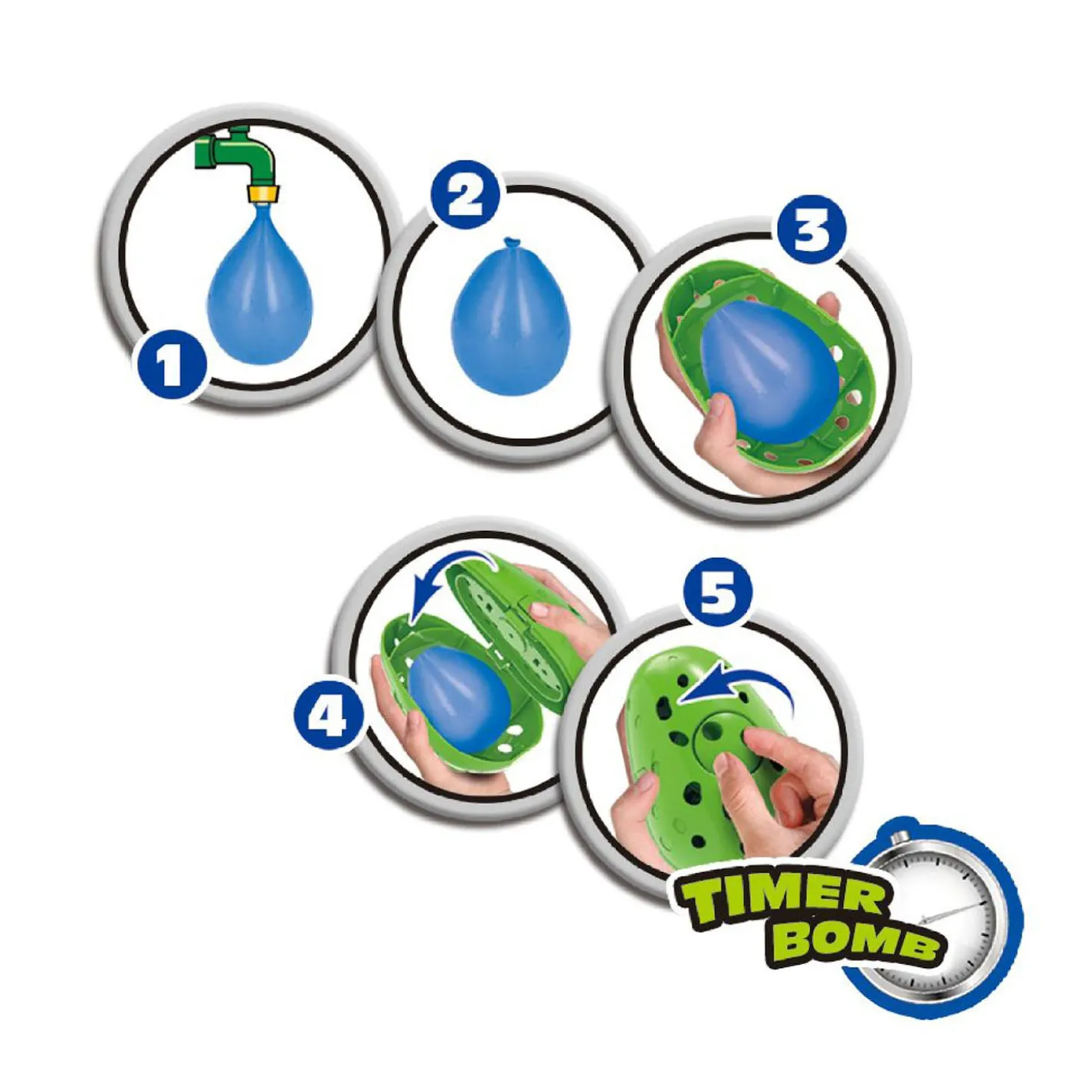 Vul een waterballon met water met het bijgeleverde hulpstukje en plaats ‘m in de Splash Potato. Draai aan de timer en… nu kan het overgooien beginnen! Als jij de Splash Potato net in je handen hebt als de timer af gaat, knapt de waterballon open en word je nat. Je bent nu voor deze ronde uitgeschakeld. De laatste speler die overblijft, wint het spel!
