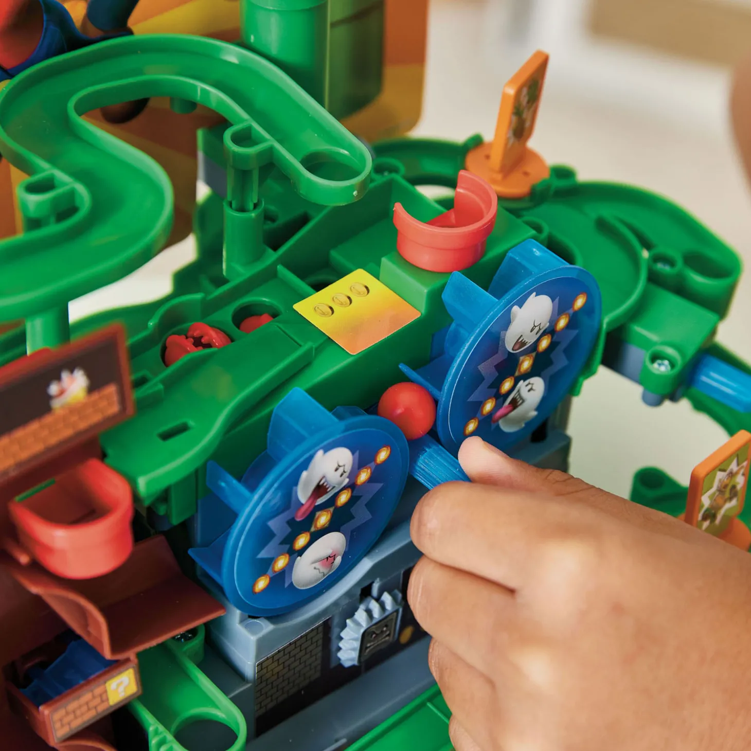 Breng je knikker naar de finish af met behulp van de 3 knoppen en de 2 draaiende wielen. Leidt ‘m door de 7 lastige zones om je doel te bereiken.