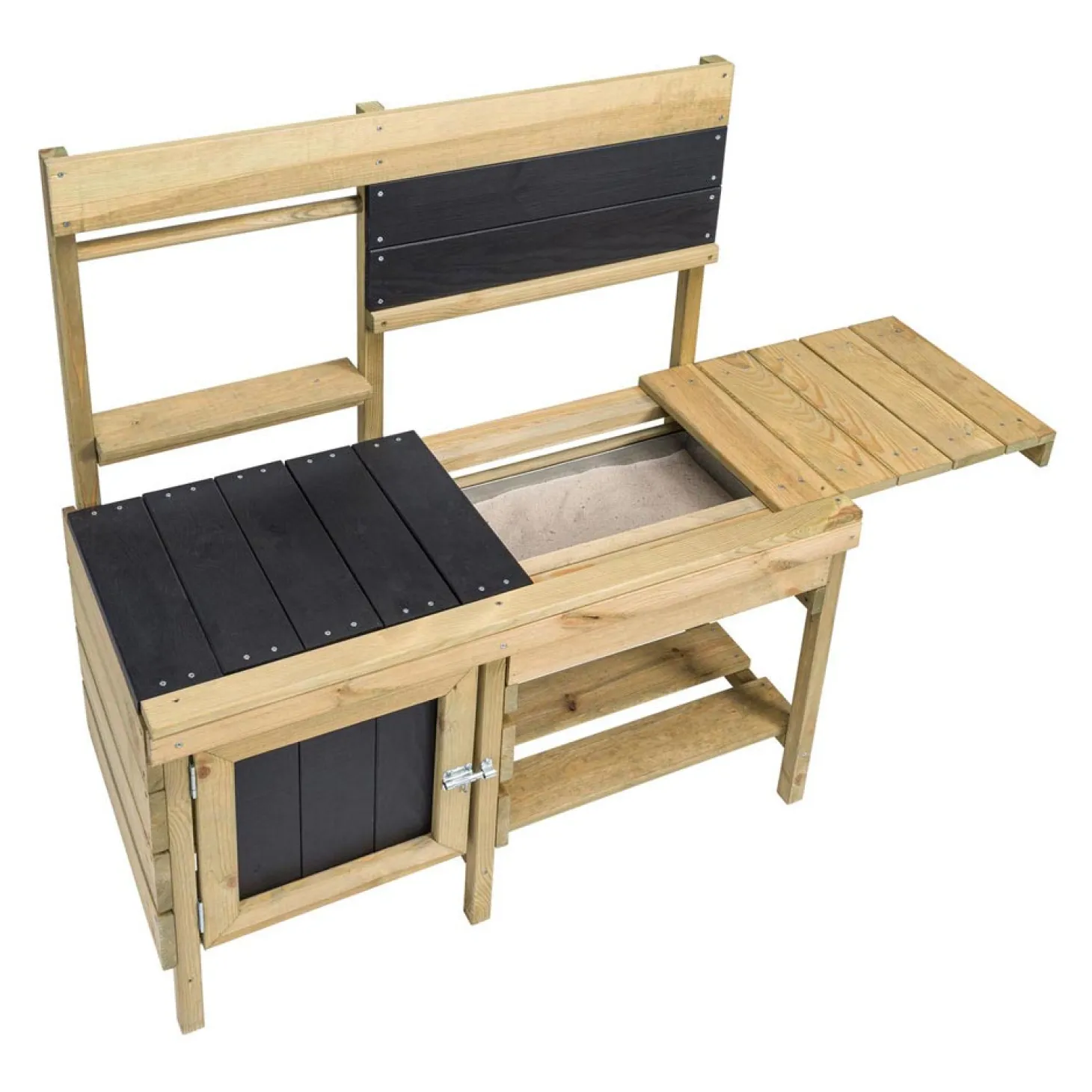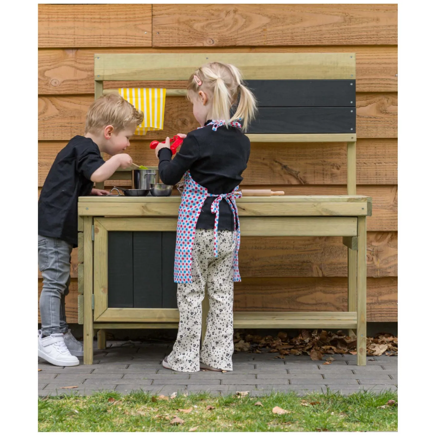 De buitenkeuken bestaat uit geïmpregneerd FSC® gecertificeerd vurenhout dat jarenlang meegaat.