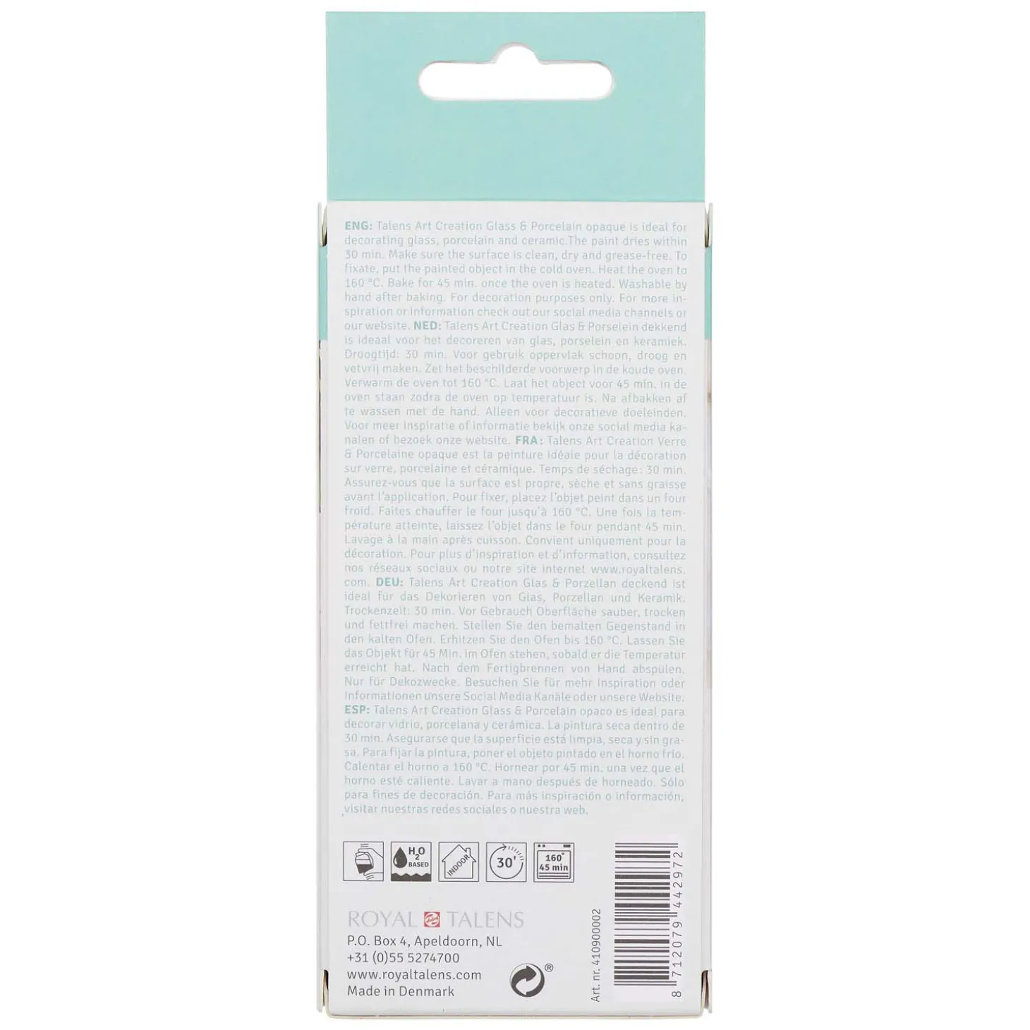 - Plaats het voorwerp in een koude oven, zet de oven op 160 °C en fixeer het werk voor 45 minuten zodra de oven op de juiste temperatuur is. Handwasbaar na fixatie. Alleen voor decoratieve doeleinden.