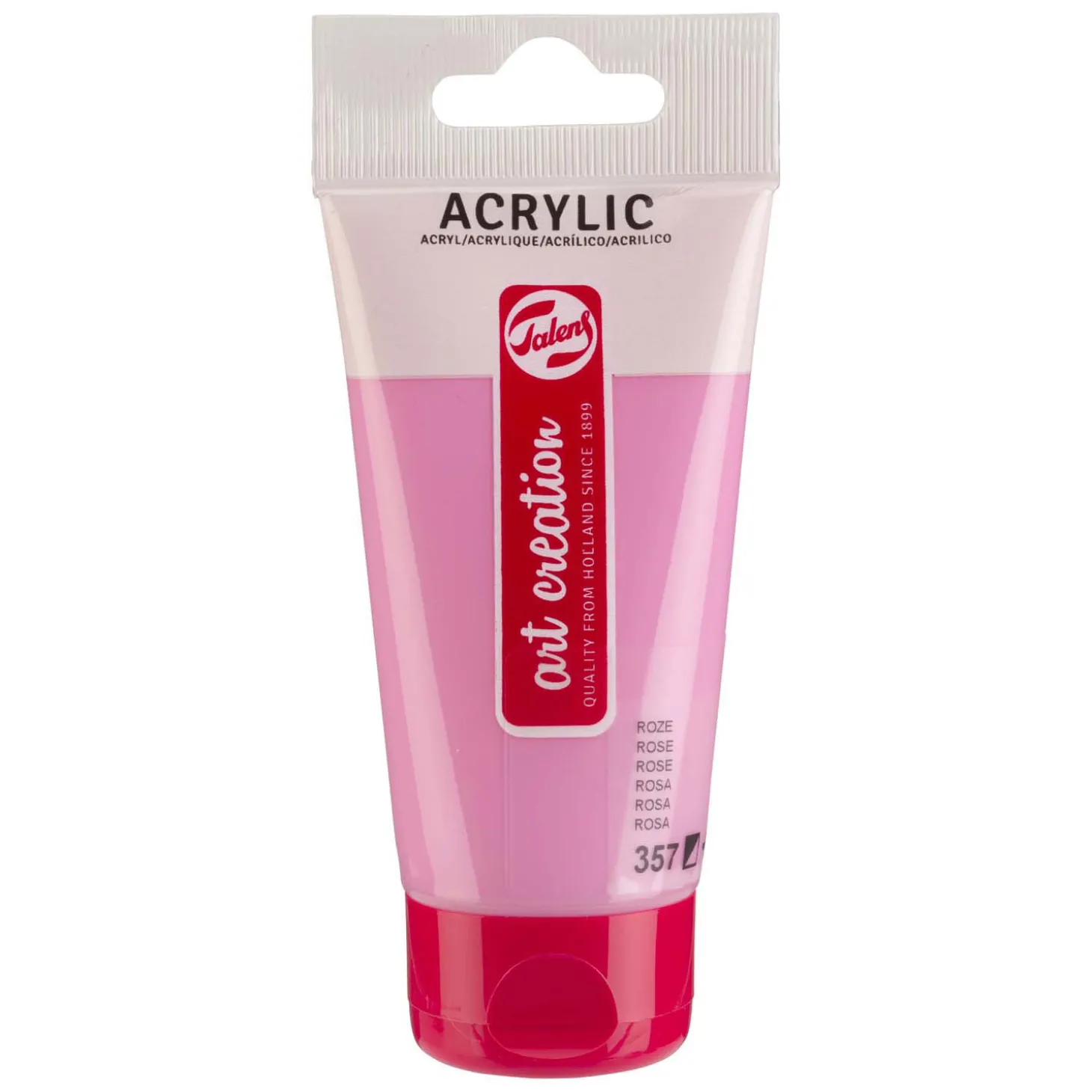 Deze acrylverf in de kleur Roze (357) is een semi-dekkende verf met een uitstekende lichtechtheid (+++).