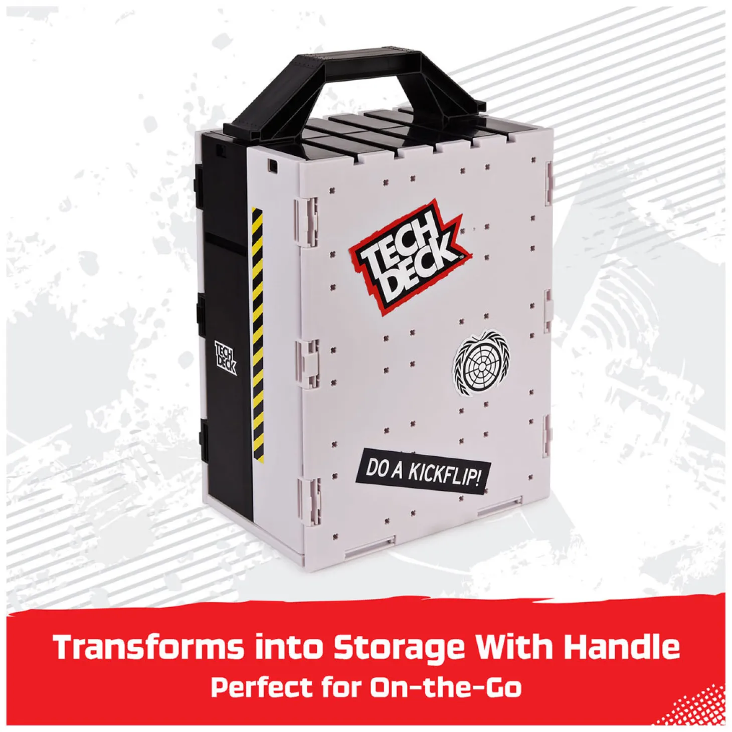 Inhoud: 1 Tech Deck-fingerboard, 1 transformerende basis, 2 Hubba-ledges, 1 trap, 2 roll-in rampen, 1 gemonteerde ramp, 1 picknicktafel, 1 rail, 6 x-verbindingsstukken, 1 stuur, 2 stickervellen, 6 x-verbindingsstukken, 6 X-Connect-afdekkingen, 1 gebruiksaanwijzing