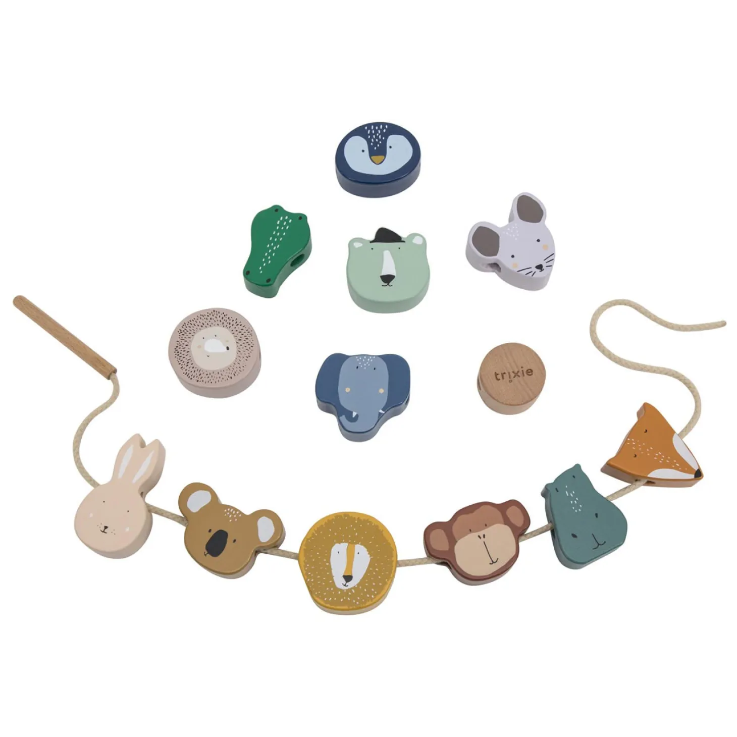 De perfecte manier om de kleine vingertjes van kinderen te trainen! Rijg alle dieren aan het touwtje met behulp van de houten naald. Kinderen leren hierdoor al spelend complexe en precieze bewegingen uit te voeren met hun handjes. De dierenkralen zijn gemaakt van 100% FSC © gecertificeerd hout. Alle verven zijn op waterbasis en veilig voor baby’s.