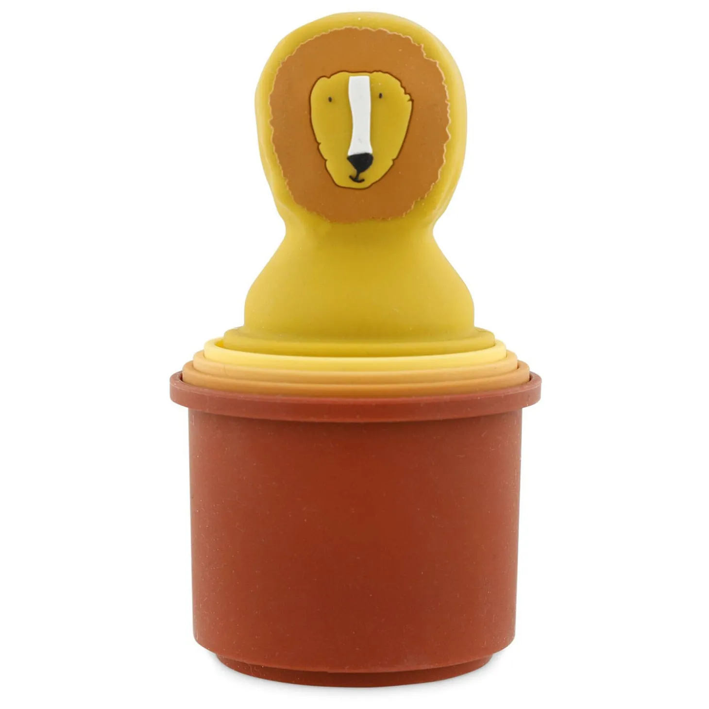Hoger… Hoger… Oeps! Daar gaan ze. Deze stapelbare bekertjes van zacht siliconen hebben prachtige kleuren en leuke vormen. Sommige hebben gaatjes om ze op een speciale manier te laten drijven, en andere zijn dicht, zodat je ze kunt vullen en leeggieten. Je kunt ze ook als gietbekertjes gebruiken – ideaal om jouw baby’s haartjes te spoelen.