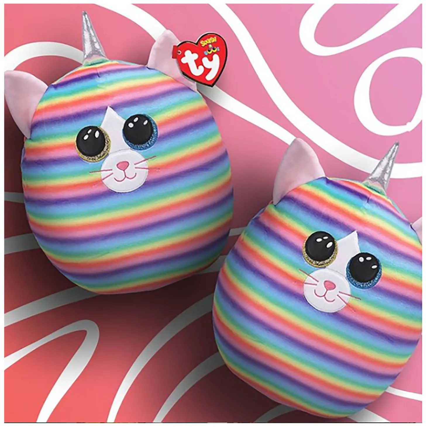 Ty Squish a Boo Heather is een zacht knuffelkussen in de vorm van een kat. Leuk om mee te knuffelen en erg decoratief voor op je kamer! I was a cat when I was born, then I magically grew a horn. I know that this is not the norm, but now I am a unicorn! Heather is jarig op 26 april. Afmetingen: 31 x 23 x 31 cm.