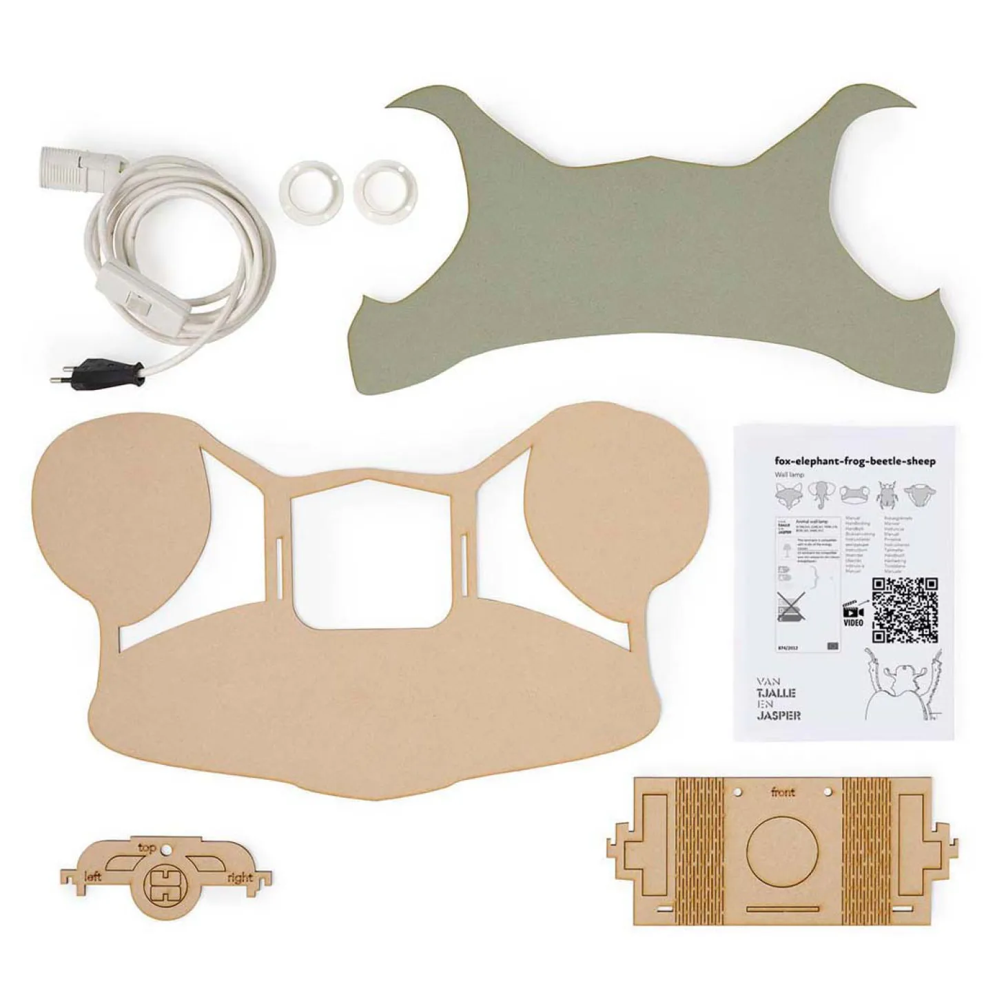 Onze kikker wandlamp wordt geleverd als een handig bouwpakket. In de doos vind je alles wat je nodig hebt, inclusief een heldere handleiding. Het in elkaar zetten is eenvoudig en kost slechts een paar minuten. Let wel, de lichtbron wordt niet meegeleverd. Wij raden aan om een LED-lichtbron te gebruiken voor het beste resultaat.