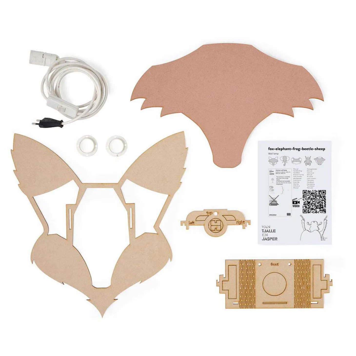 De vossen wandlamp wordt geleverd als een slim bouwpakket. In de doos vind je alle benodigde onderdelen en een duidelijke handleiding. Binnen enkele minuten zet je de lamp eenvoudig in elkaar. Let op: De lichtbron wordt niet meegeleverd. Voor het beste effect raden wij een LED-lichtbron aan.